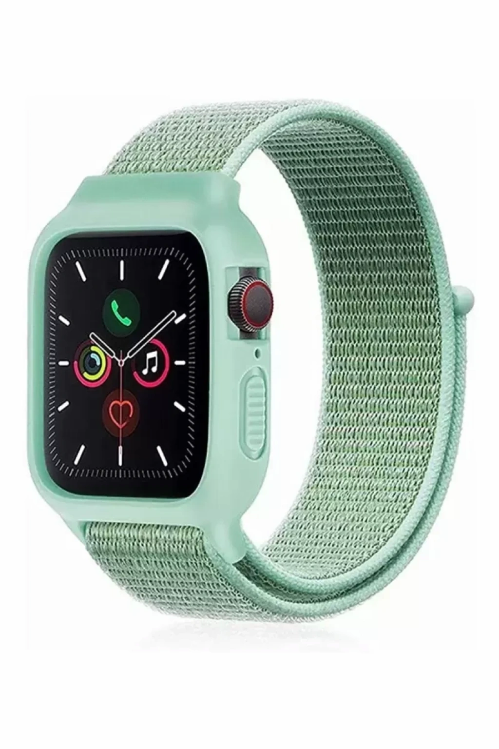 Apple Watch 38mm Hasırlı Cırtcırtlı Kasalı Kordon - Turkuaz