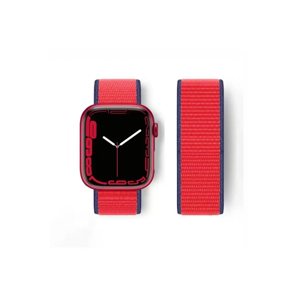 Apple Watch 38mm Hasırlı Cırtcırtlı Kordon - Lacivert-Kırmızı