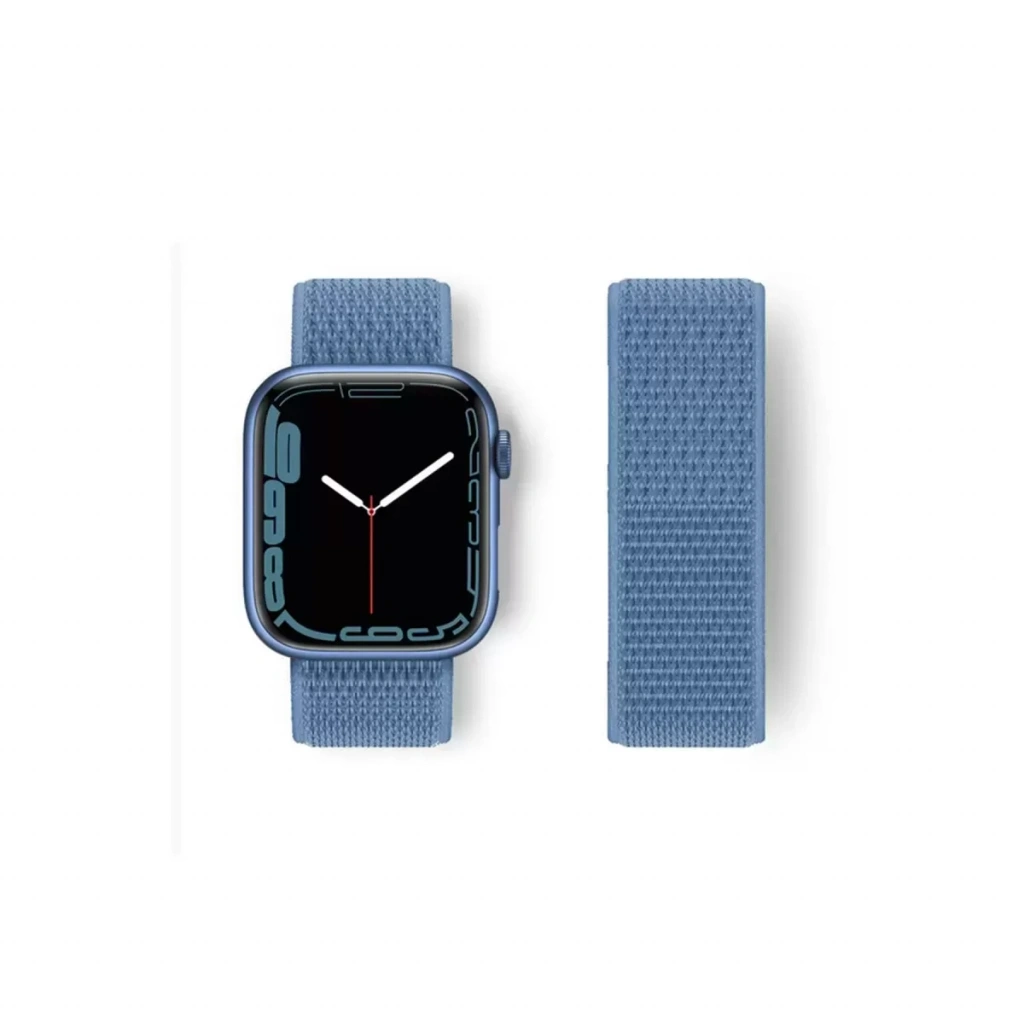 Apple Watch 38mm Hasırlı Cırtcırtlı Kordon - Mavi