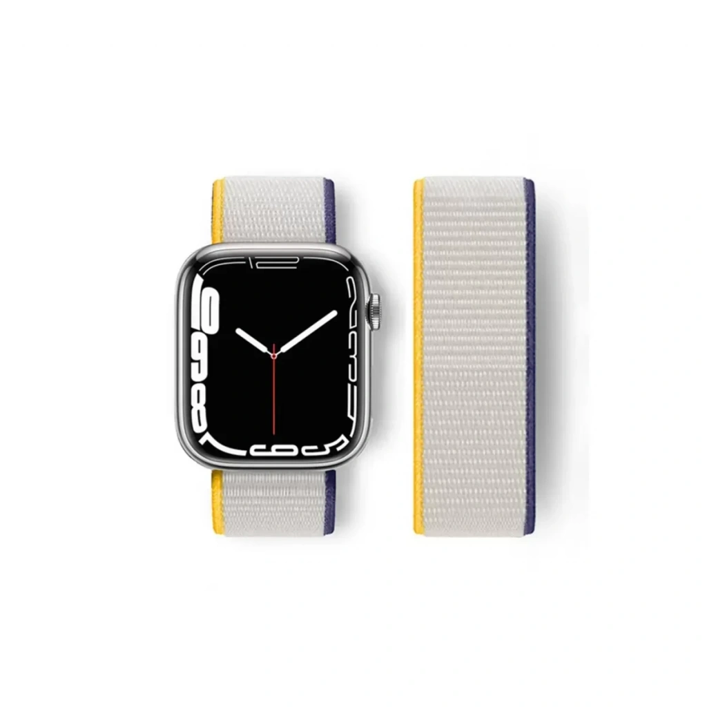 Apple Watch 38mm Hasırlı Cırtcırtlı Kordon - Sarı-Beyaz