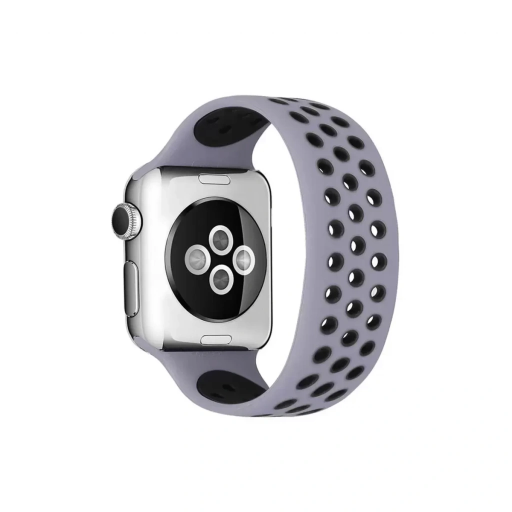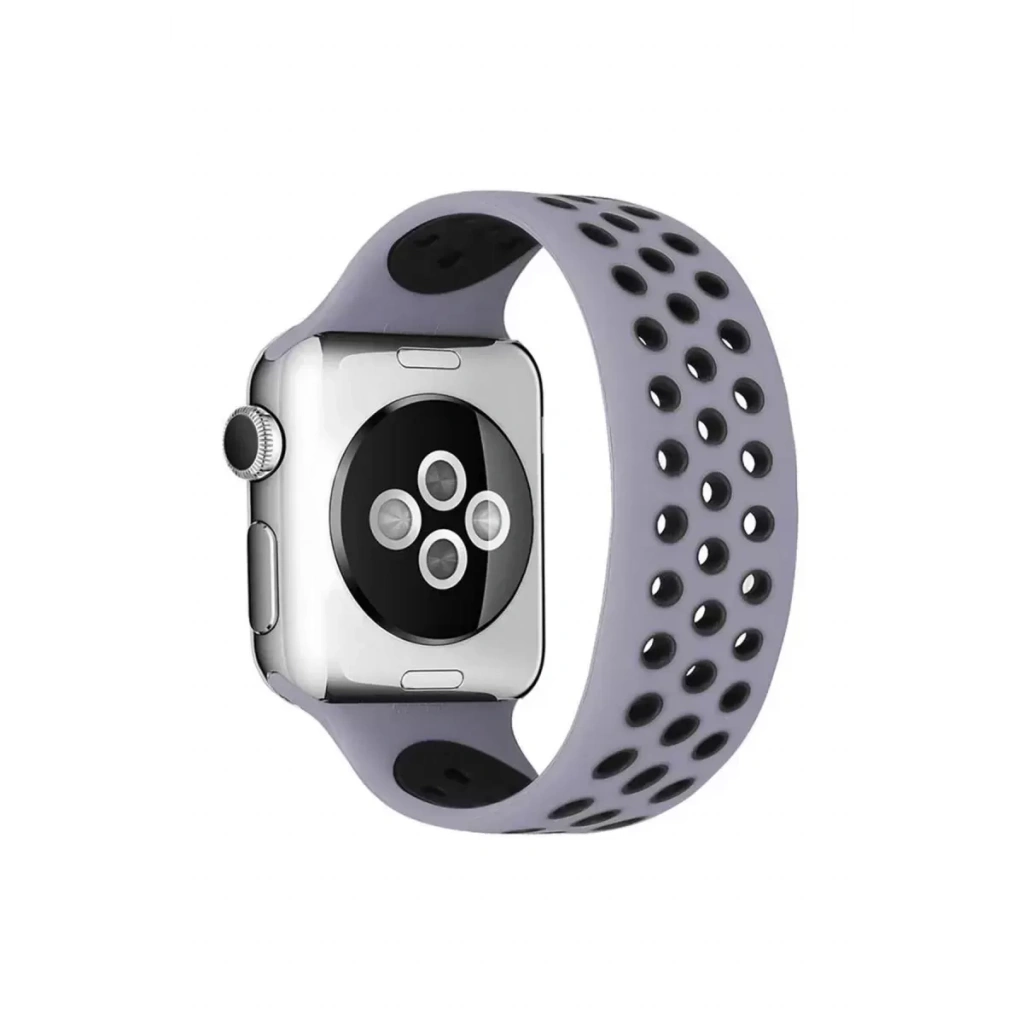 Apple Watch 42mm Ayarlı Delikli Silikon Kordon - Gri-Siyah