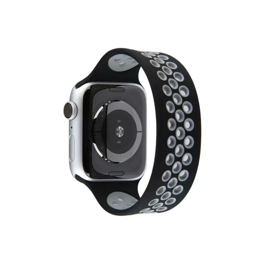 Apple Watch 42mm Ayarlı Delikli Silikon Kordon - Siyah-Gri
