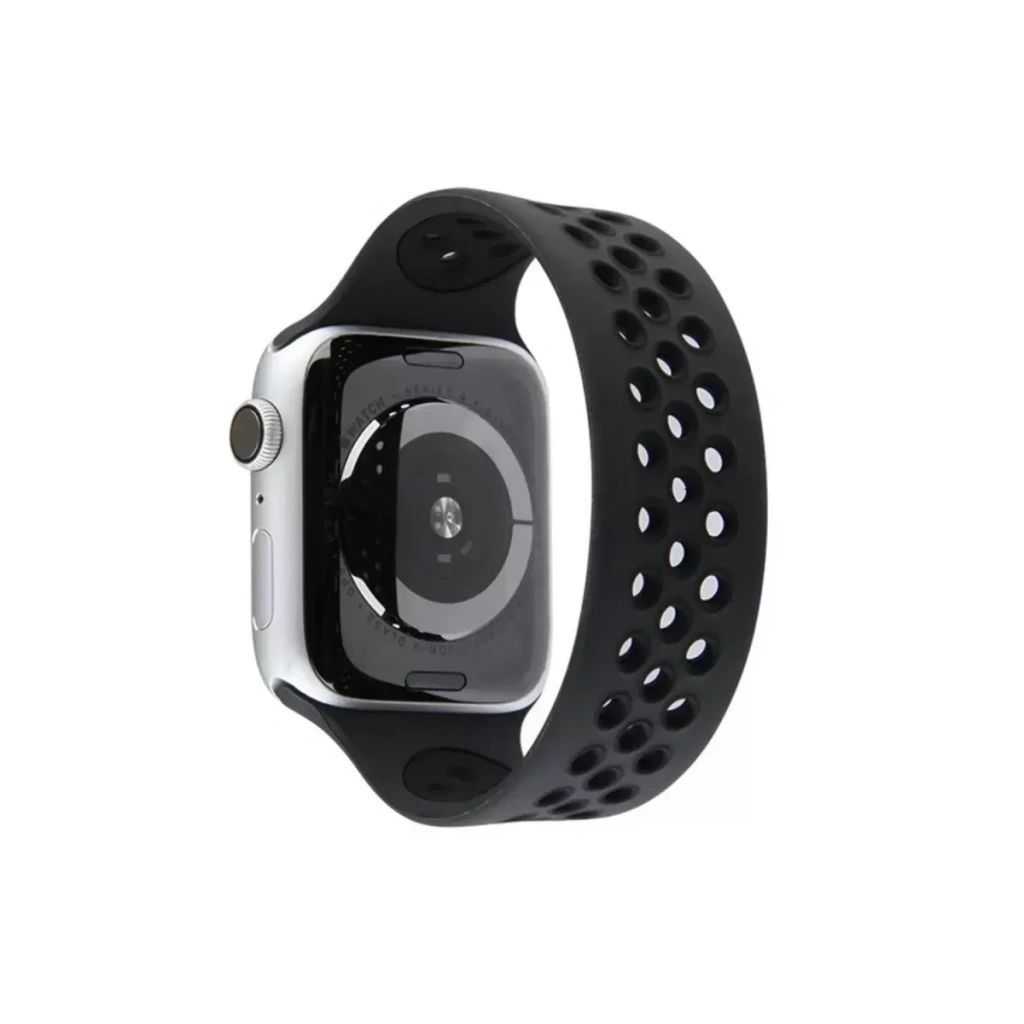 Apple Watch 42mm Ayarlı Delikli Silikon Kordon - Siyah-Siyah