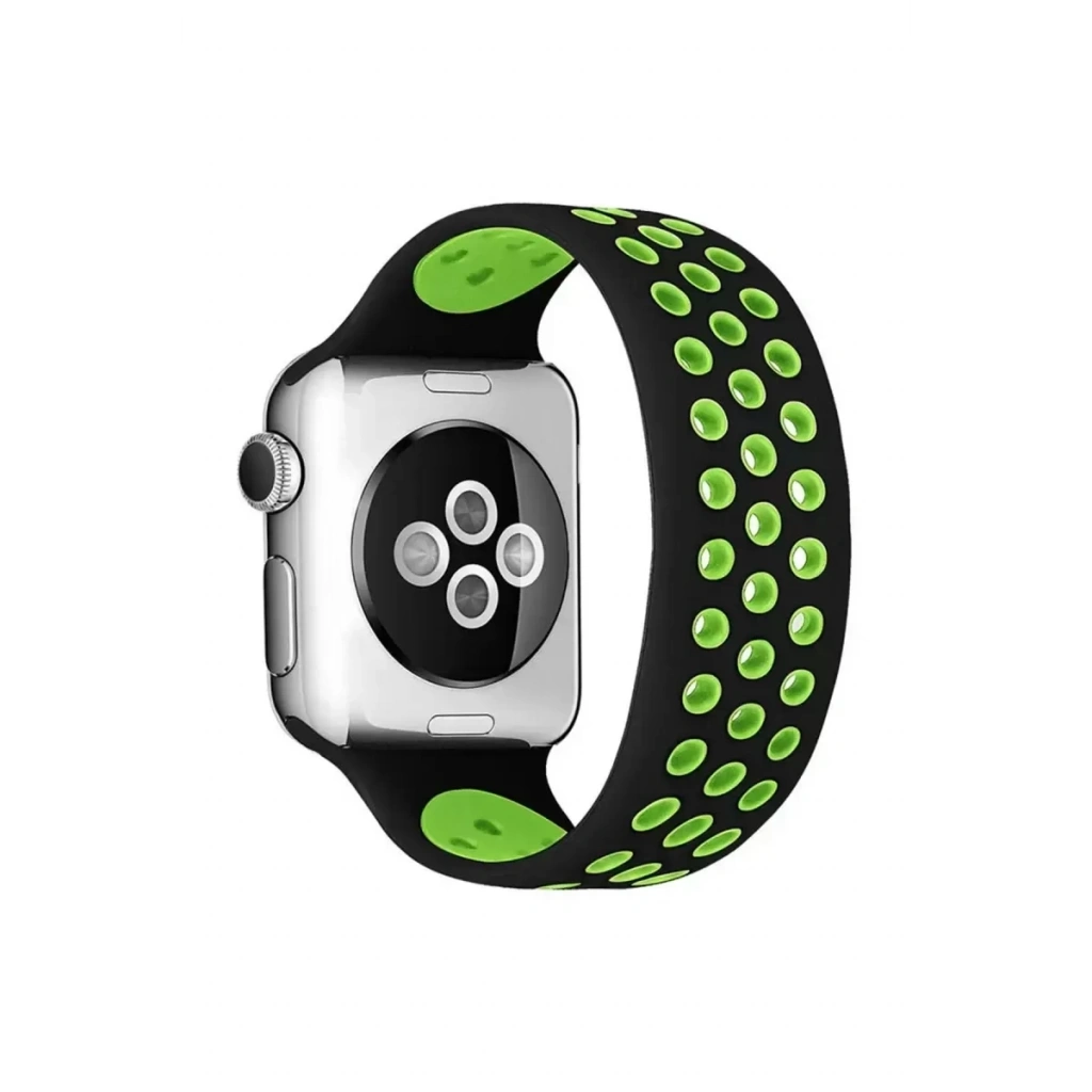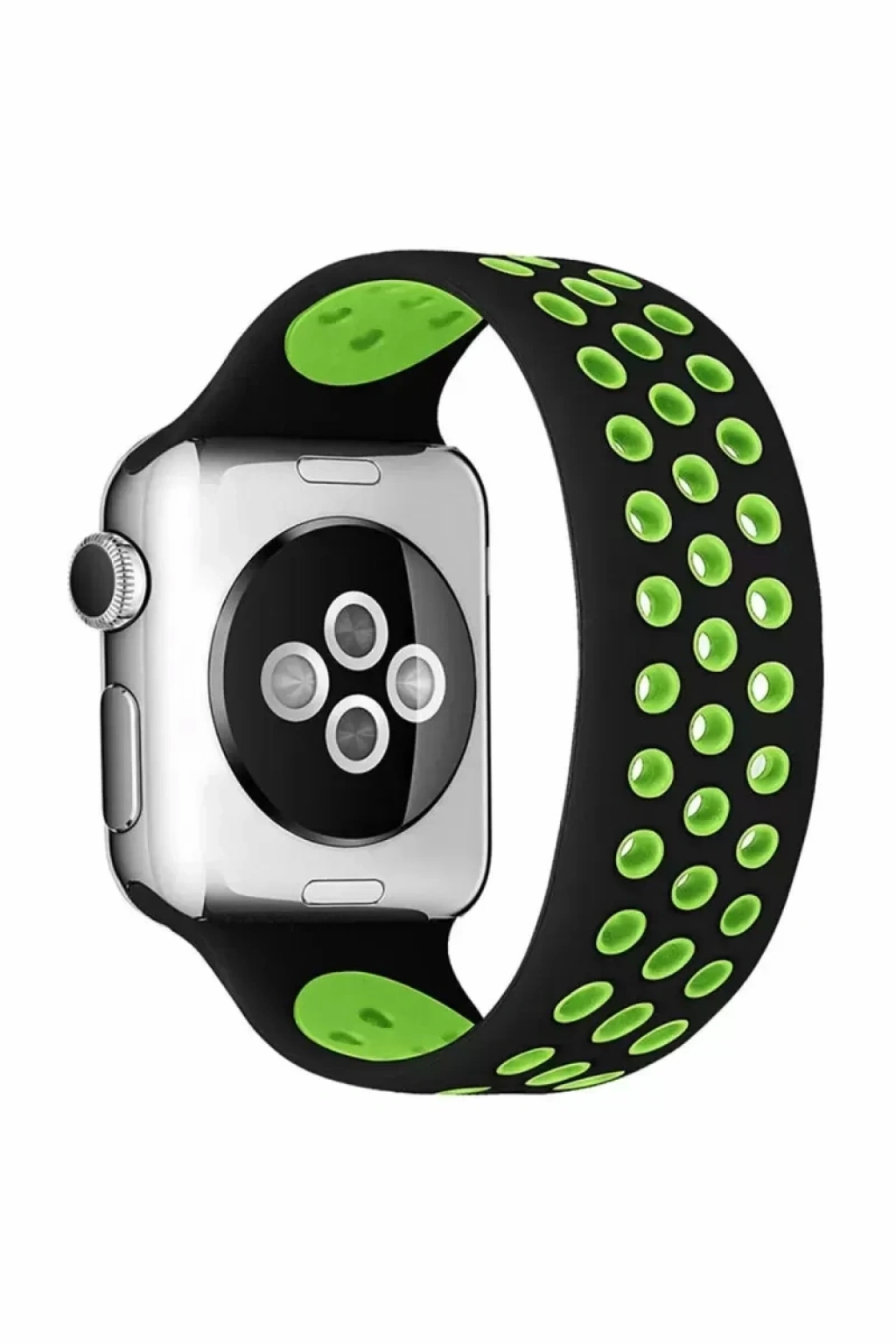 Apple Watch 42mm Ayarlı Delikli Silikon Kordon - Siyah-Yeşil