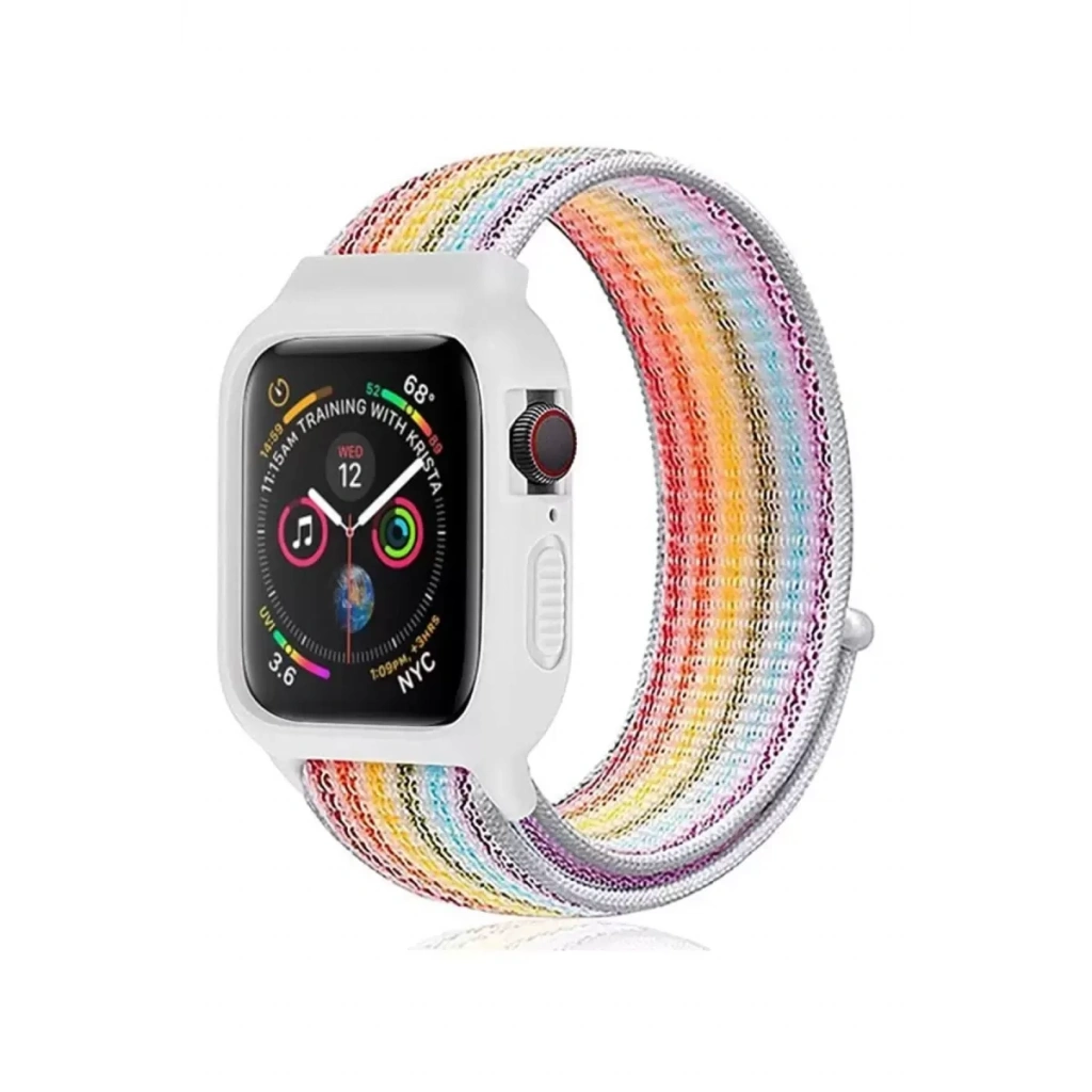 Apple Watch 42mm Hasırlı Cırtcırtlı Kasalı Kordon - Gökkuşağı 2