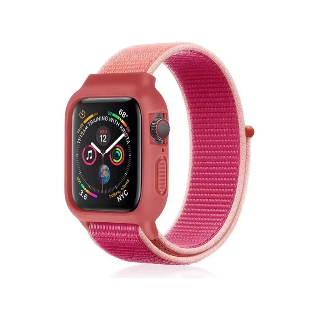 Apple Watch 42mm Hasırlı Cırtcırtlı Kasalı Kordon - Mor