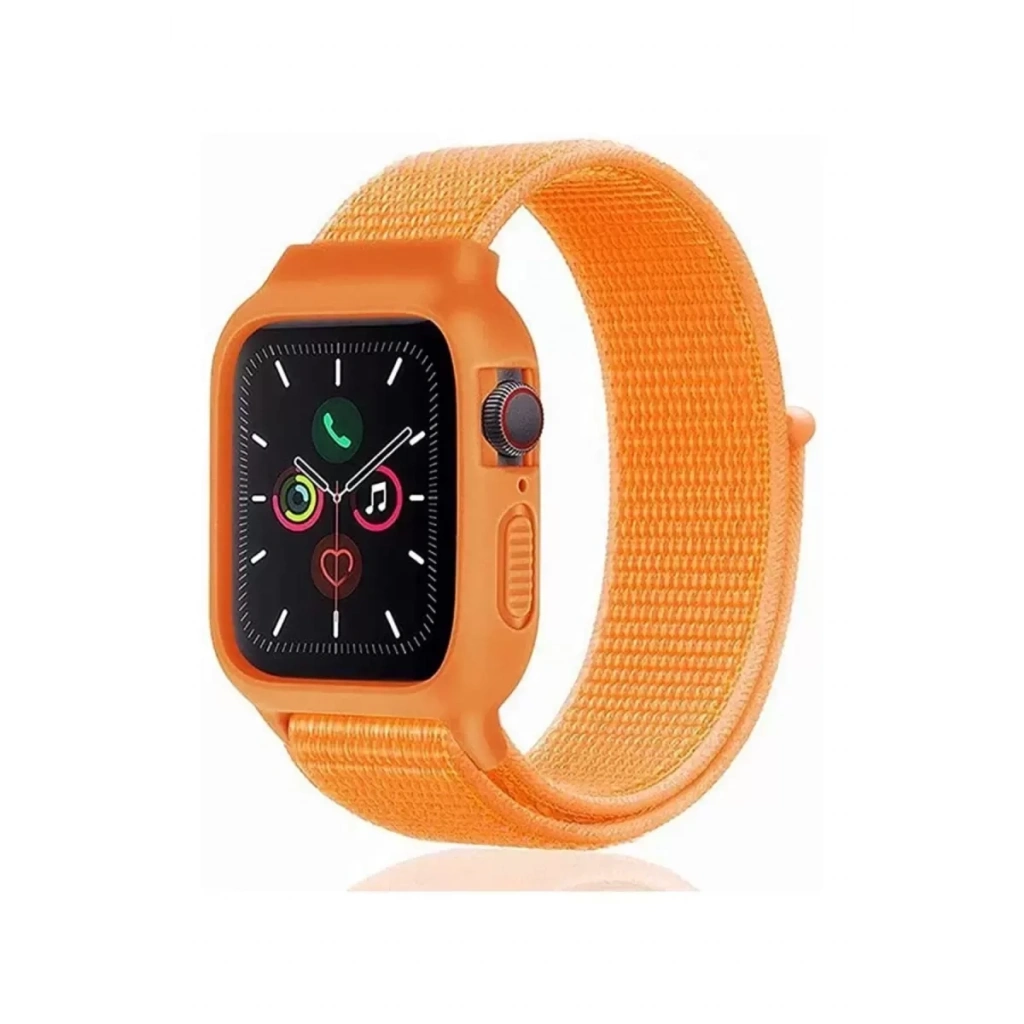 Apple Watch 42mm Hasırlı Cırtcırtlı Kasalı Kordon - Turuncu