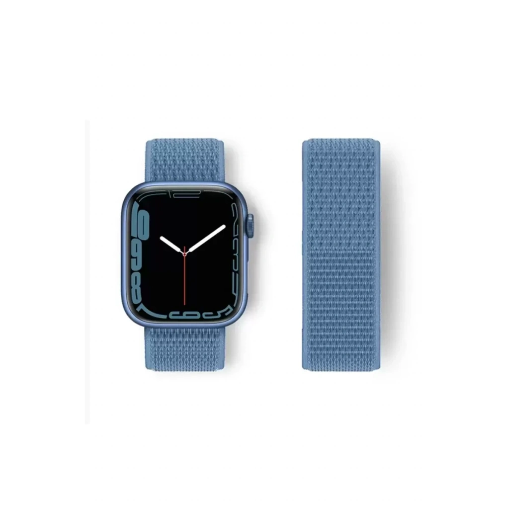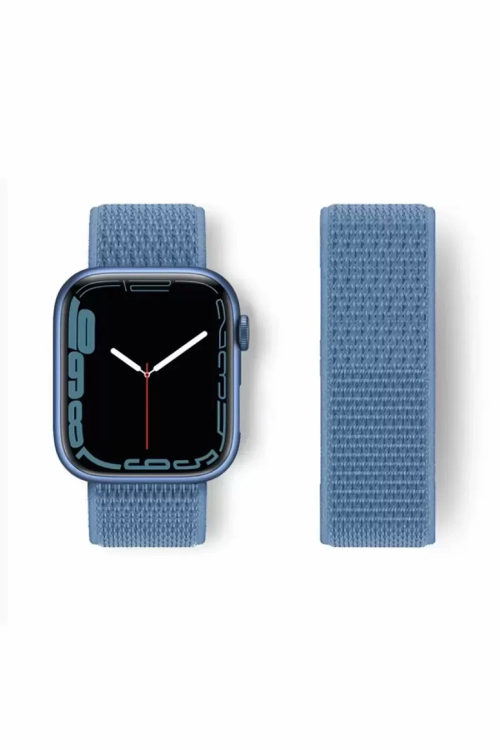 Apple Watch 42mm Hasırlı Cırtcırtlı Kordon - Mavi