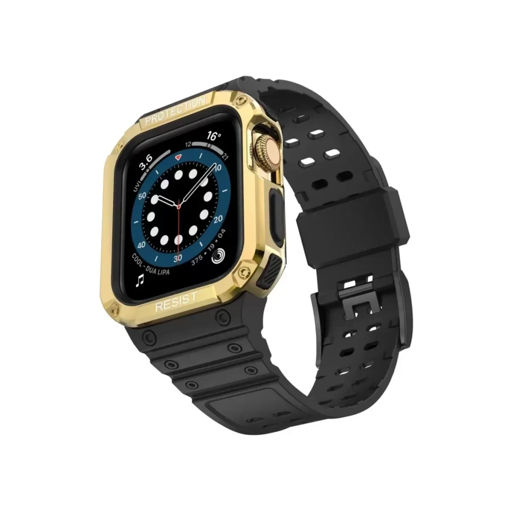 Apple Watch 42mm KR401 Silikon Kordon - Siyah-Gold