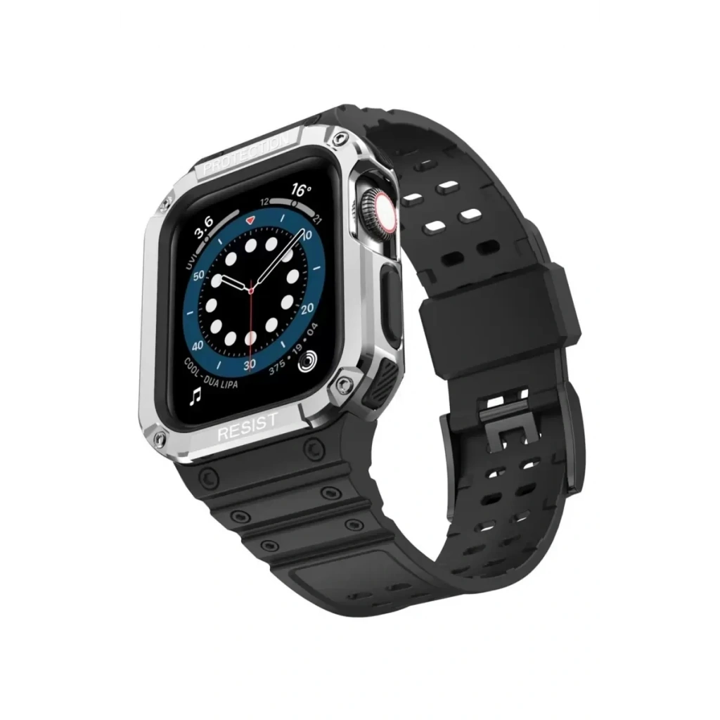 Apple Watch 42mm KR401 Silikon Kordon - Siyah-Gümüş