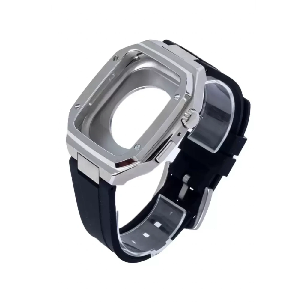Apple Watch 44mm KR402 Metal Kasa Silikon Kordon - Gümüş