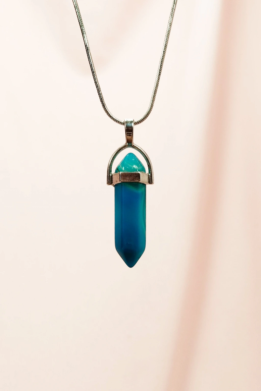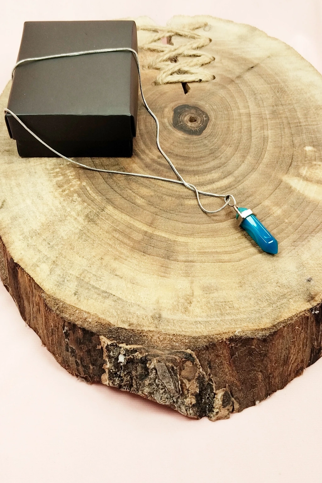 Aquamarin Doğal Taşı Zincirli El Yapımı Tasarımlı Kolye Uç: 3,5 cm Zincir: 20 cm Kutulu