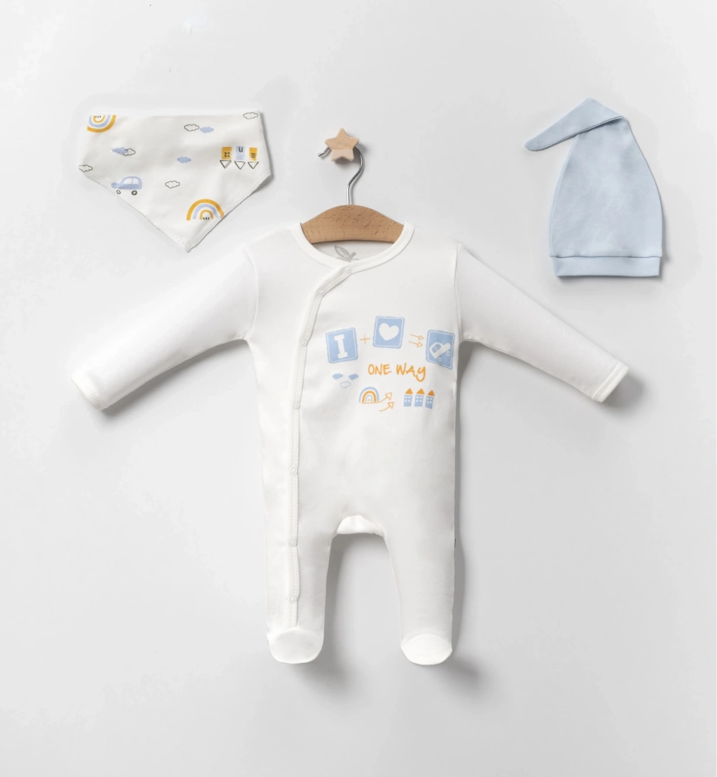 Araba Desenli Mavi 4'lü Erkek Bebek Tulumu
