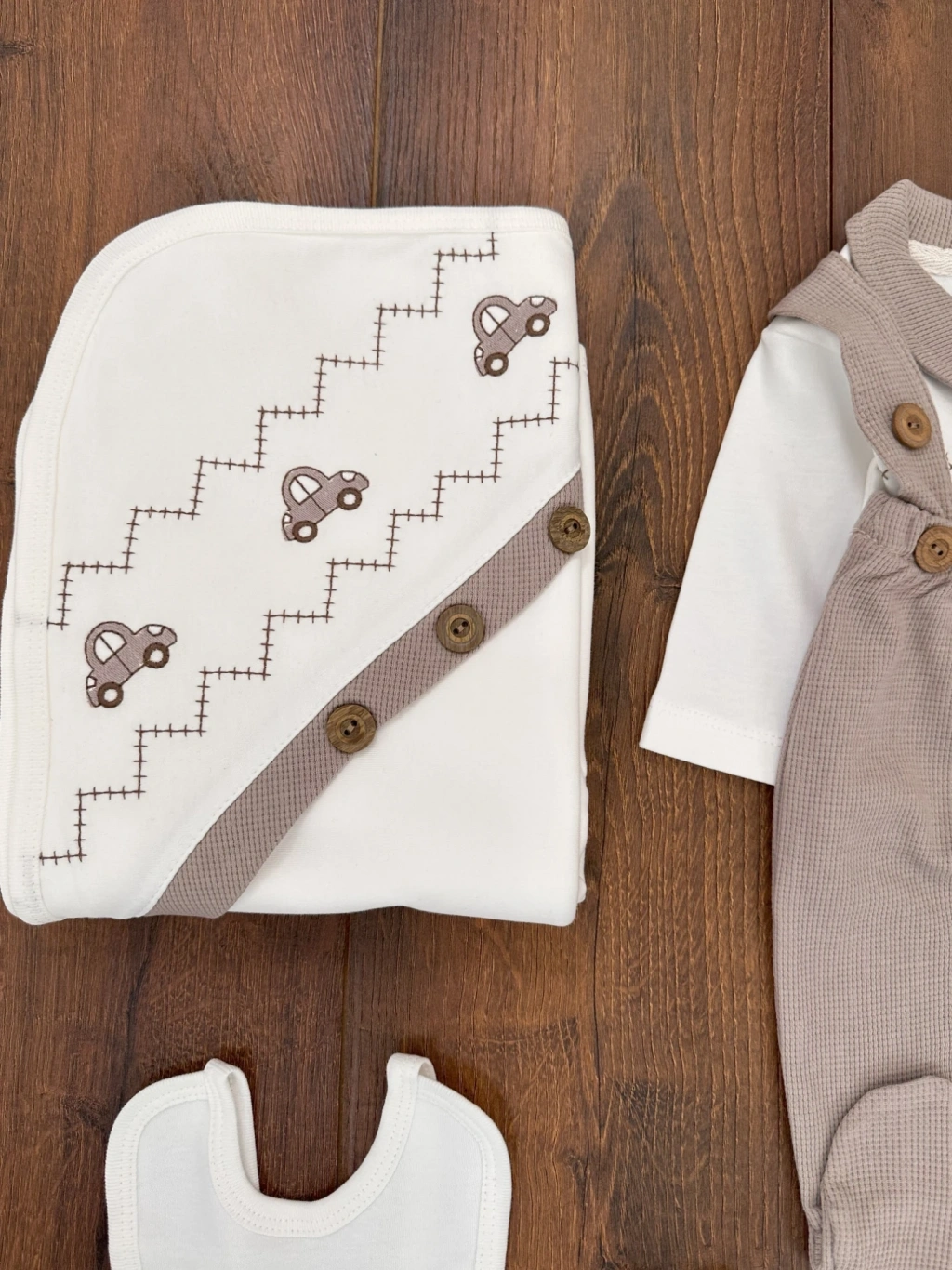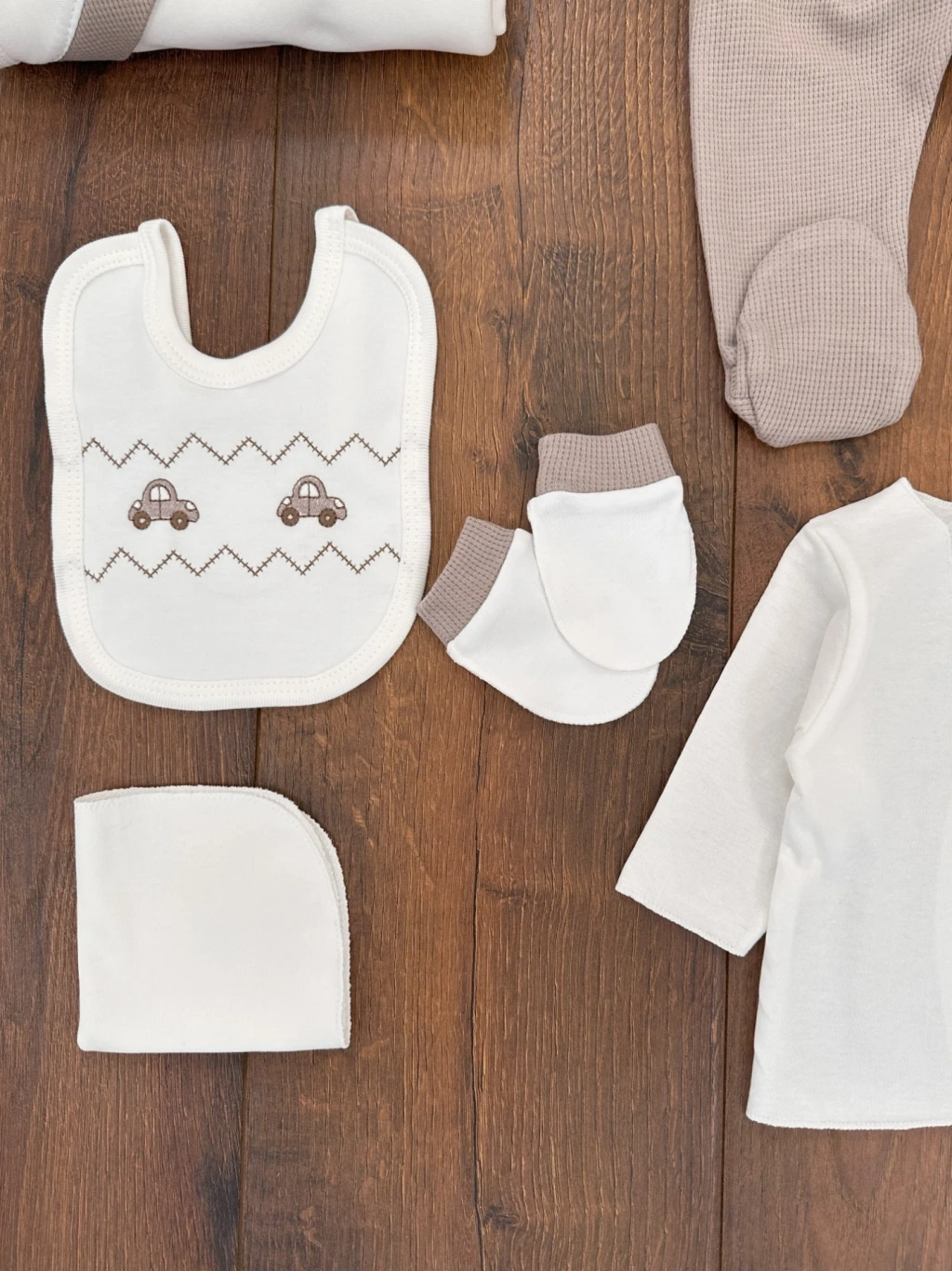 Cepli Waffle % 100 Pamuk 5'li Erkek Bebek Hastane Çıkış Seti