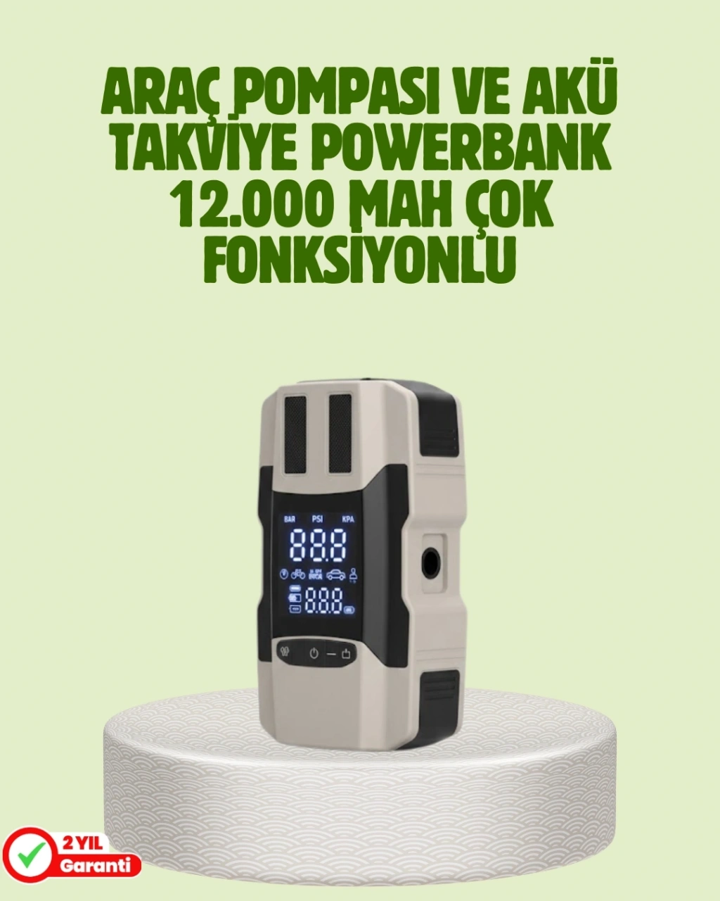 Bu akü takviye ve hava pompası, çok yönlü yapısıyla araç içi ekipmanlar arasında öne çıkar. Lastik basıncını ayarlamak, acil durumlarda aküye destek olmak ve mobil cihazları şarj etmek için tek bir cihaz yeterlidir. Dijital ekran üzerinden basınç değerleri ve çalışma durumu kolayca izlenebilir. Kompakt tasarımı sayesinde bagajda veya torpido gözünde rahatlıkla taşınabilir.