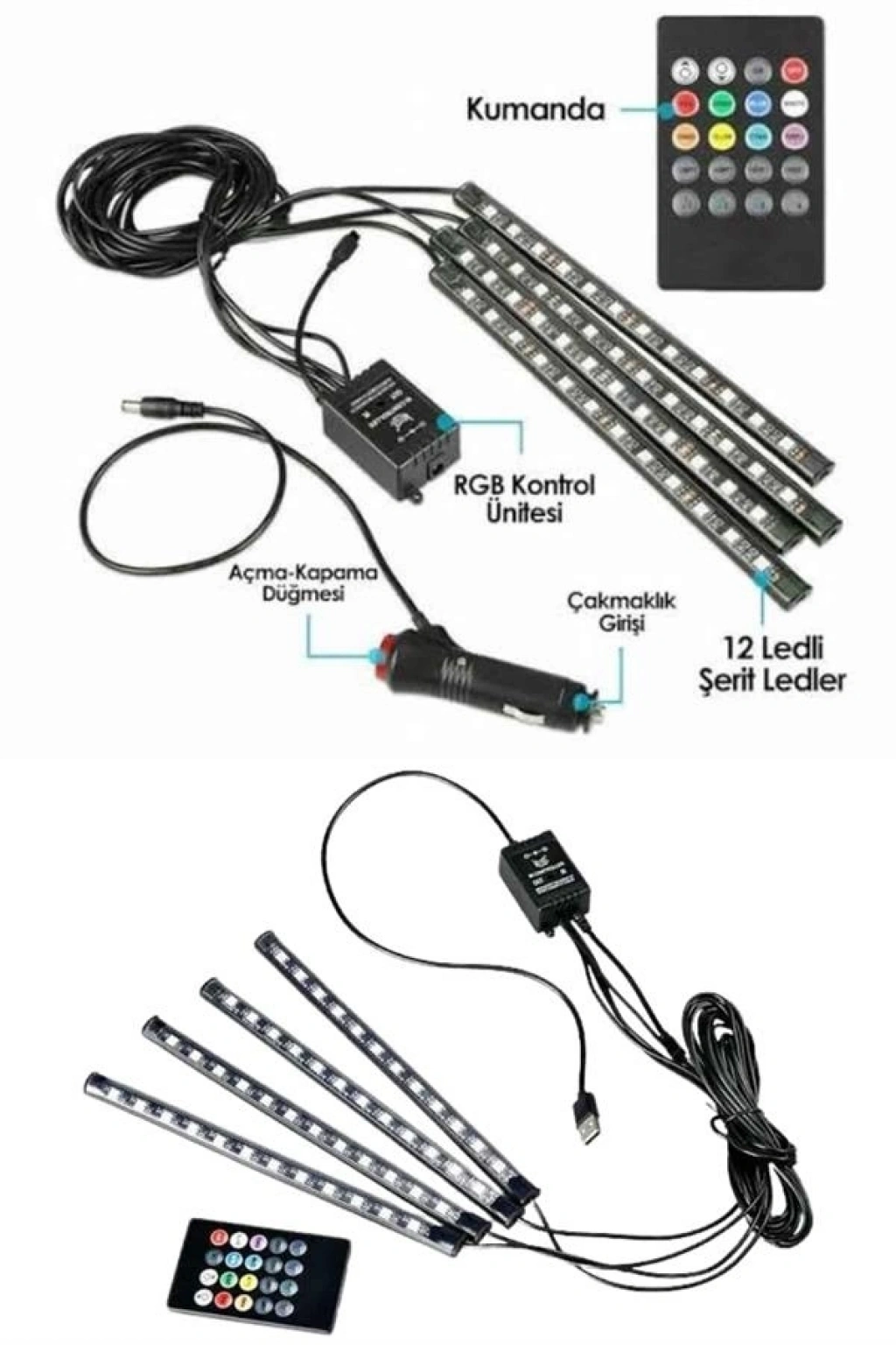 Aracınızın iç mekanında hem şıklığı hem de konforu artırmak isteyenler için tasarlanan bu 12 LED’li RGB şerit aydınlatma seti, sesle senkronize çalışan yapısı sayesinde müzikle uyum içinde yanarak etkileyici bir atmosfer oluşturur. Her biri 12 adet güçlü 5050 SMD LED barındıran 4 esnek şerit, 3M yapışkan bantları sayesinde aracınızın ayak altı gibi stratejik noktalarına kolayca monte edilir. Uzaktan kumanda ile kontrol edilen bu sistemde 8 farklı renk modu, 4 müzik senkronizasyon seçeneği, 2 geçiş efekti ve parlaklık ayarı gibi birçok özelliğe kolayca erişebilirsiniz. 12V elektrik sistemiyle çalışan ürün, tüm binek araçlarla uyumludur ve çakmaklık soketiyle kolayca çalıştırılır. Su sıçramalarına karşı dayanıklı IP5 koruma derecesi, uzun süreli ve güvenli kullanım sağlar. 1,2 m ve 1,7 m uzunluğundaki kablolar sayesinde LED şeritleri dilediğiniz noktaya rahatlıkla konumlandırabilirsiniz. Es ve fonksiyonelliği bir arada sunan bu set, araç içi ambiyansınızı benzersiz hale getirmenin pratik bir yoludur.
