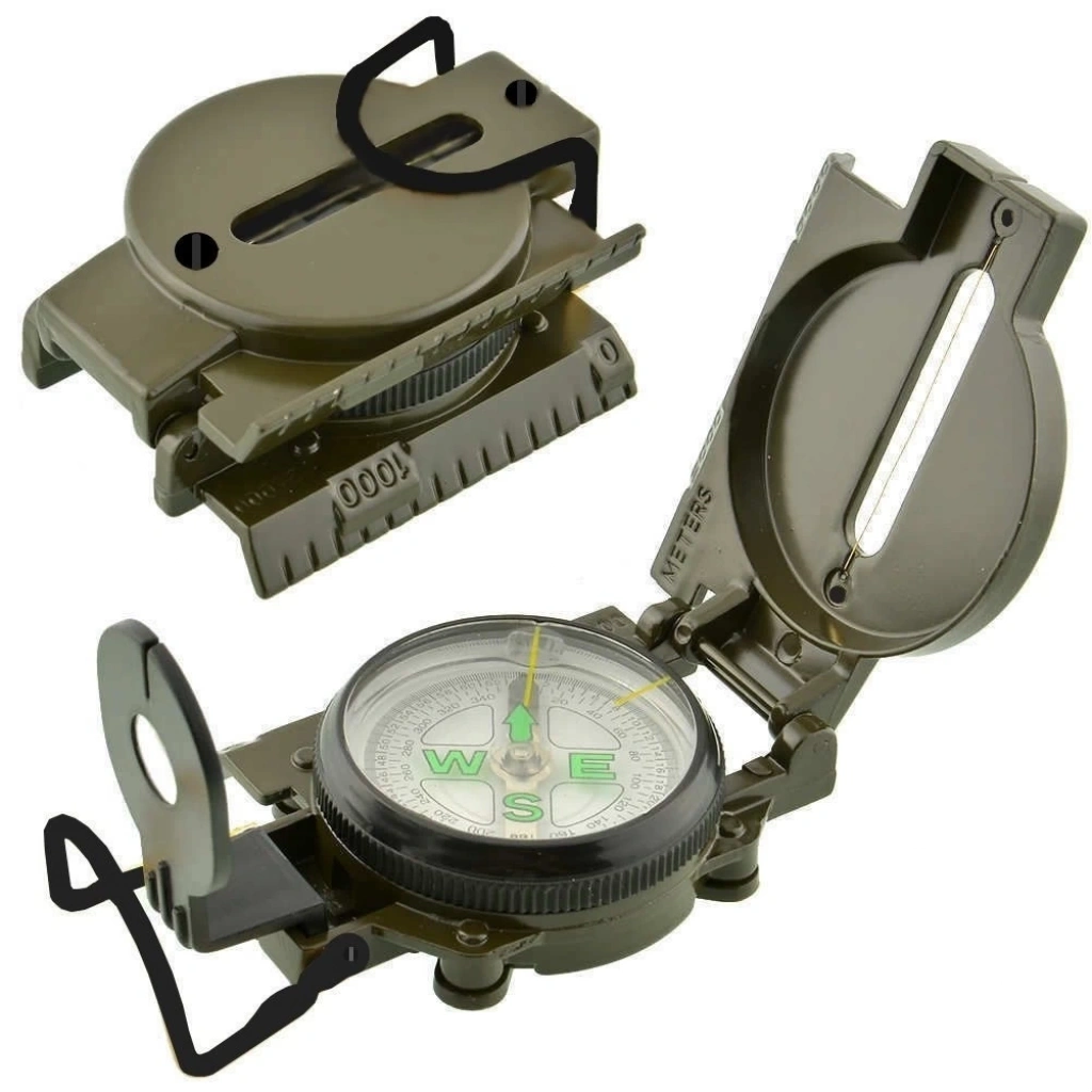 Özellikler: Büyüteç, Azimut Ölçüm Cetveli Haritalama, Kuzey, Oryantasyon, Konum, Uzaklık, Ölçülen Eğim (pitch açısı)