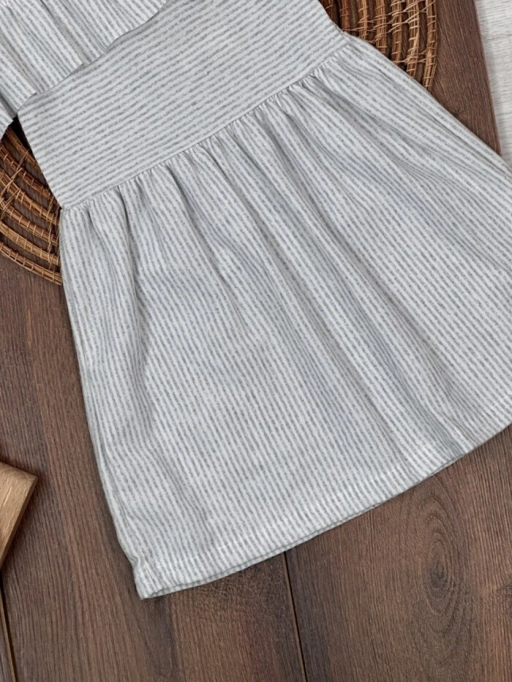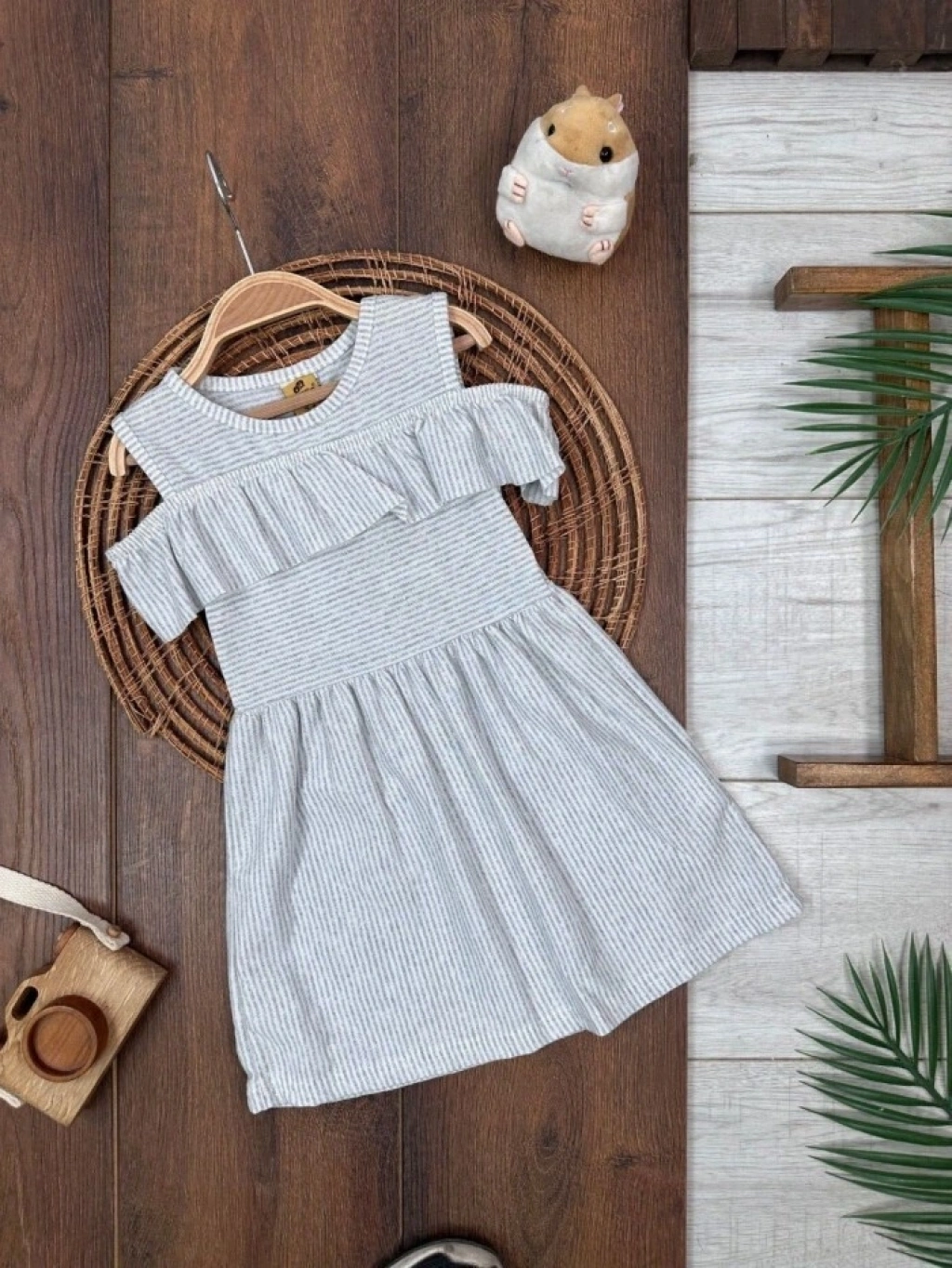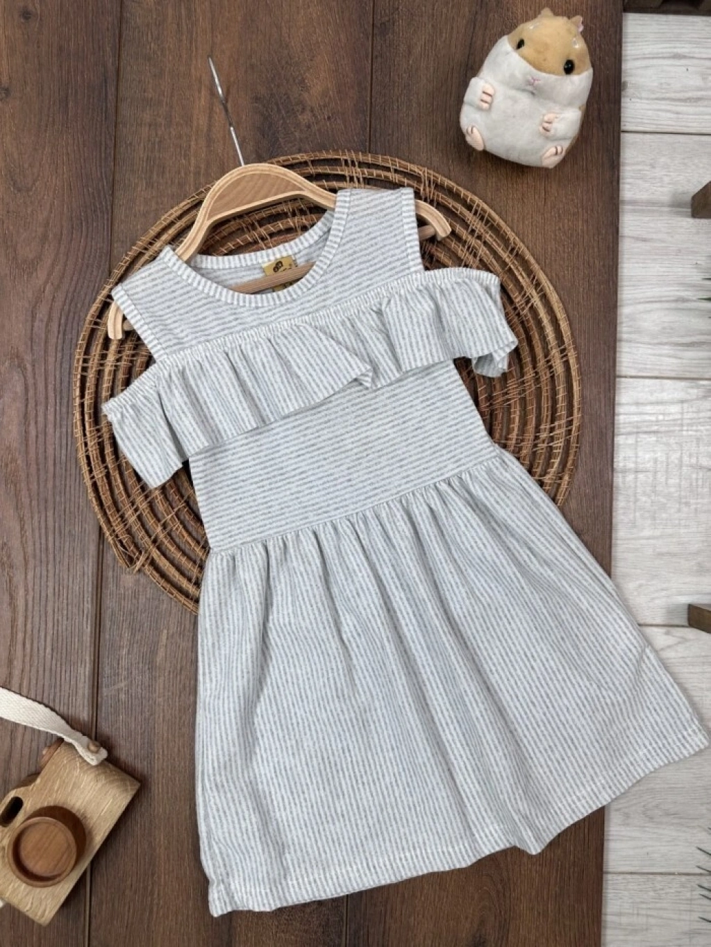 ASKILI ELBİSE KIZ ÇOCUK GRİ PAMUKLU,YAZLIK KIZ ÇOCUK ÇİZGİLİ DESENLİ ELBİSE