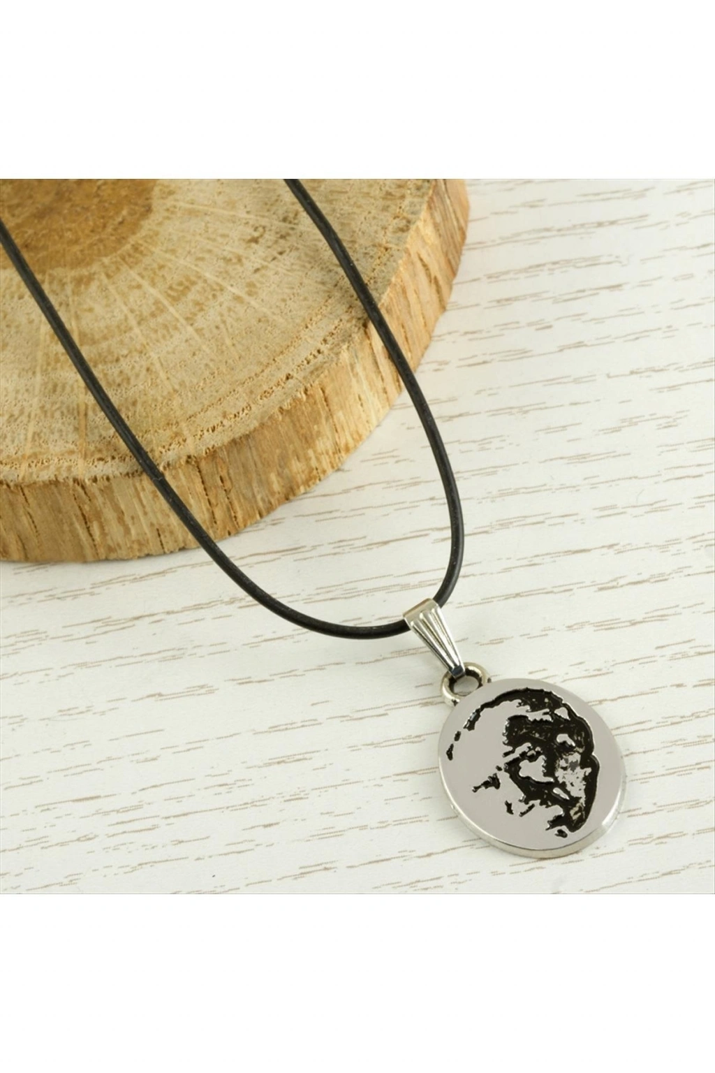 Atatürk Metal Vinlex Deri Kolye