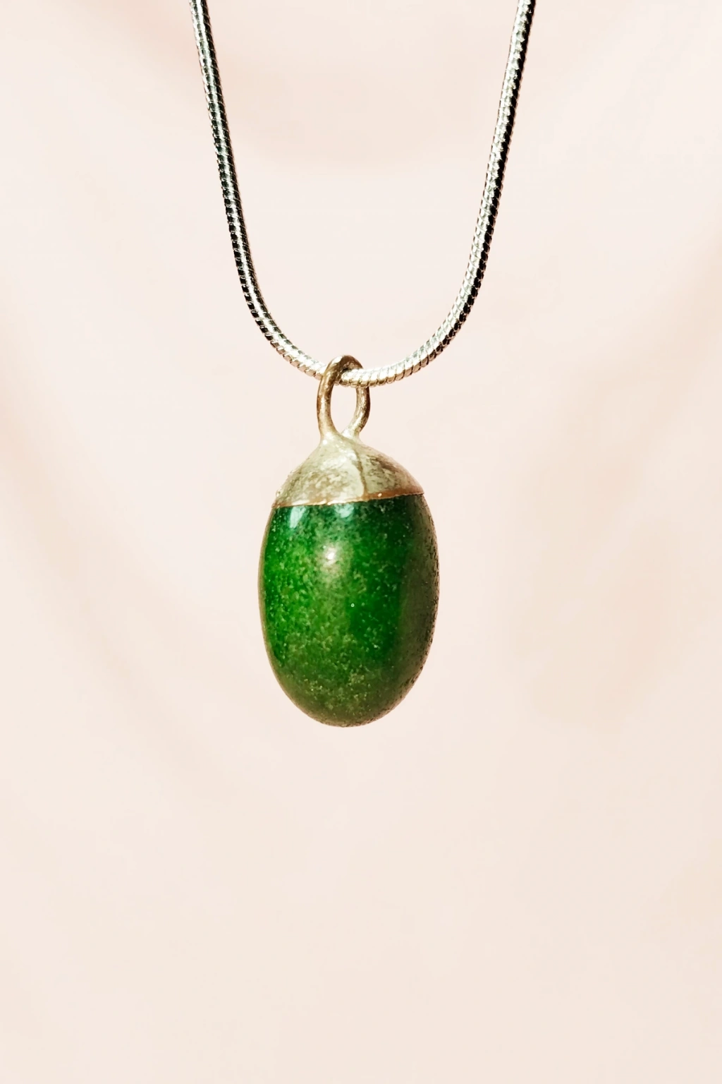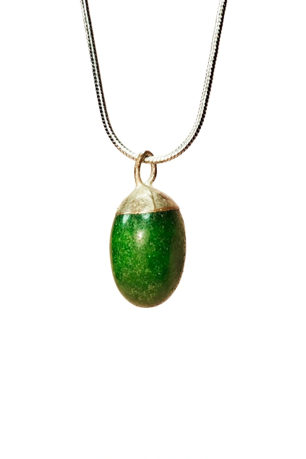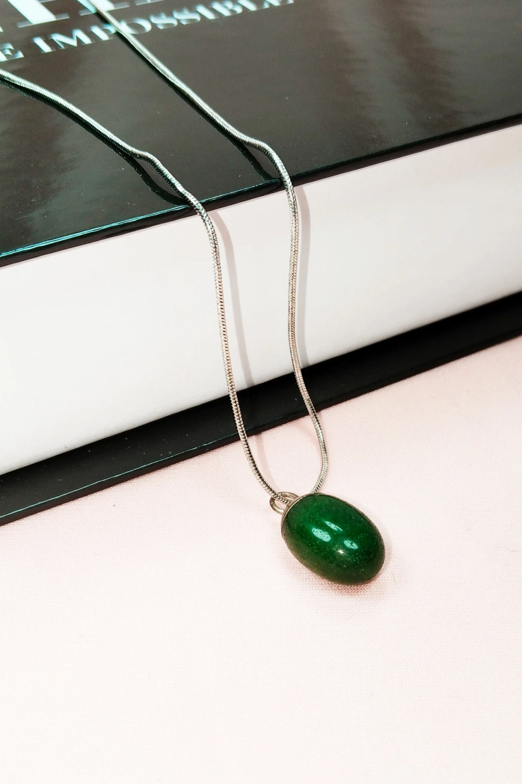 Yeşil Kuvars Doğal Taşı Zincirli El Yapımı Tasarımlı Kolye Uç: 3,5 cm Zincir: 20 cm Kutulu