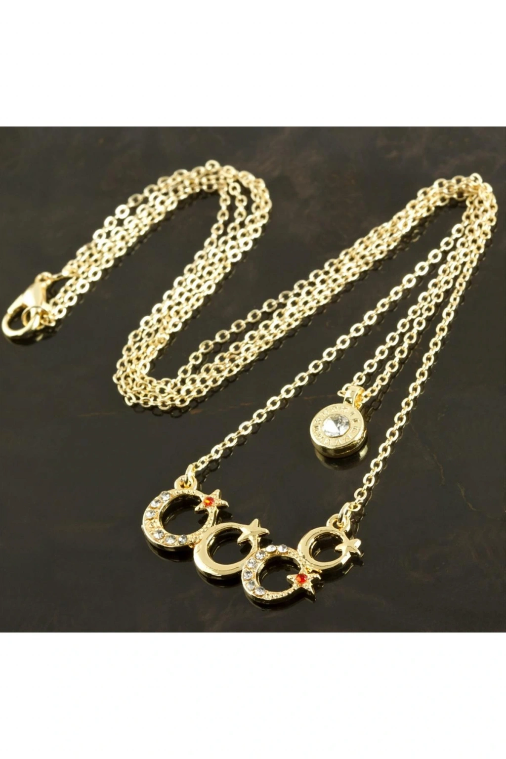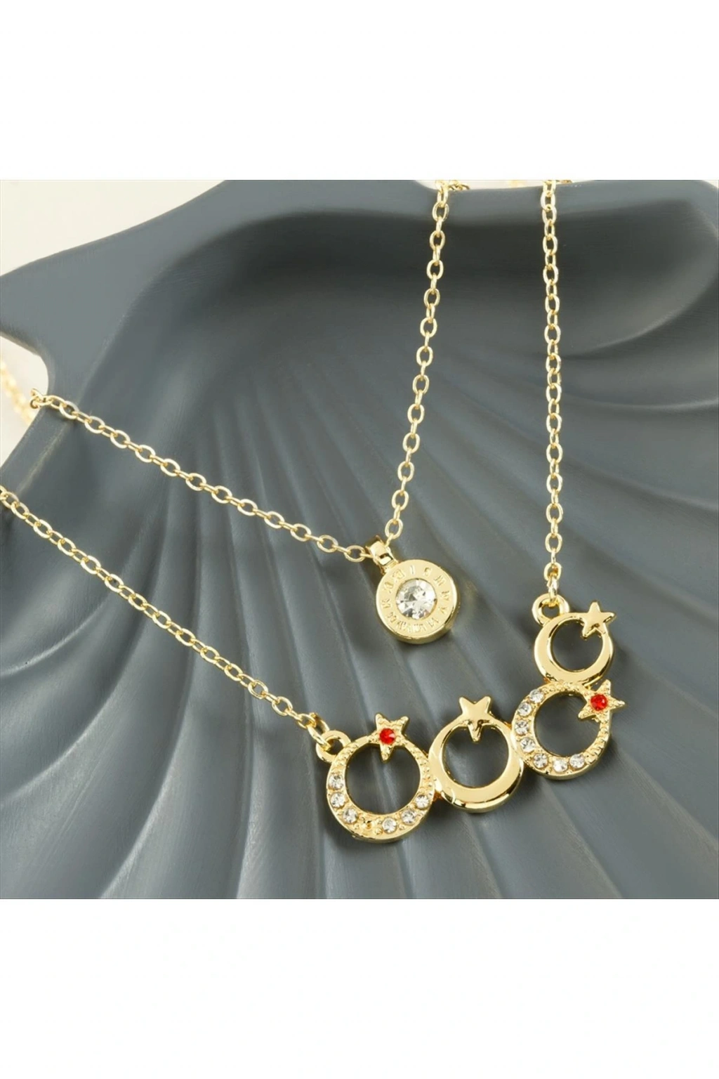 İkili Kolye; Ürün malzemesi taş ve metaldir. Çift zincirden oluşur. Ürün kartlıdır. Zincir boyu yaklaşık 50 cmdir. Ucundaki aparat boyu 2 cmdir.