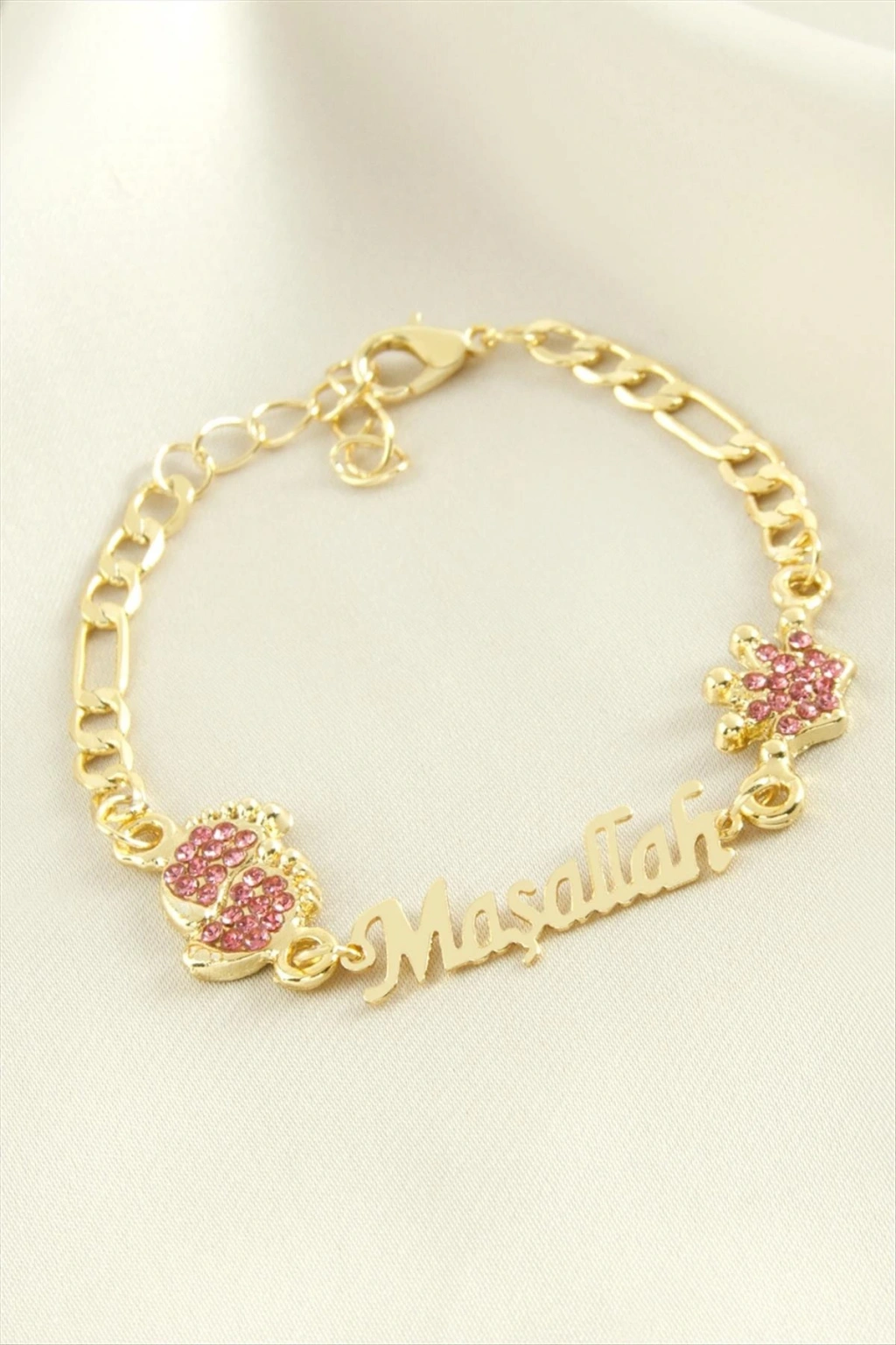 Ayak İzi Maşallah Yazılı Taşlı Bileklik