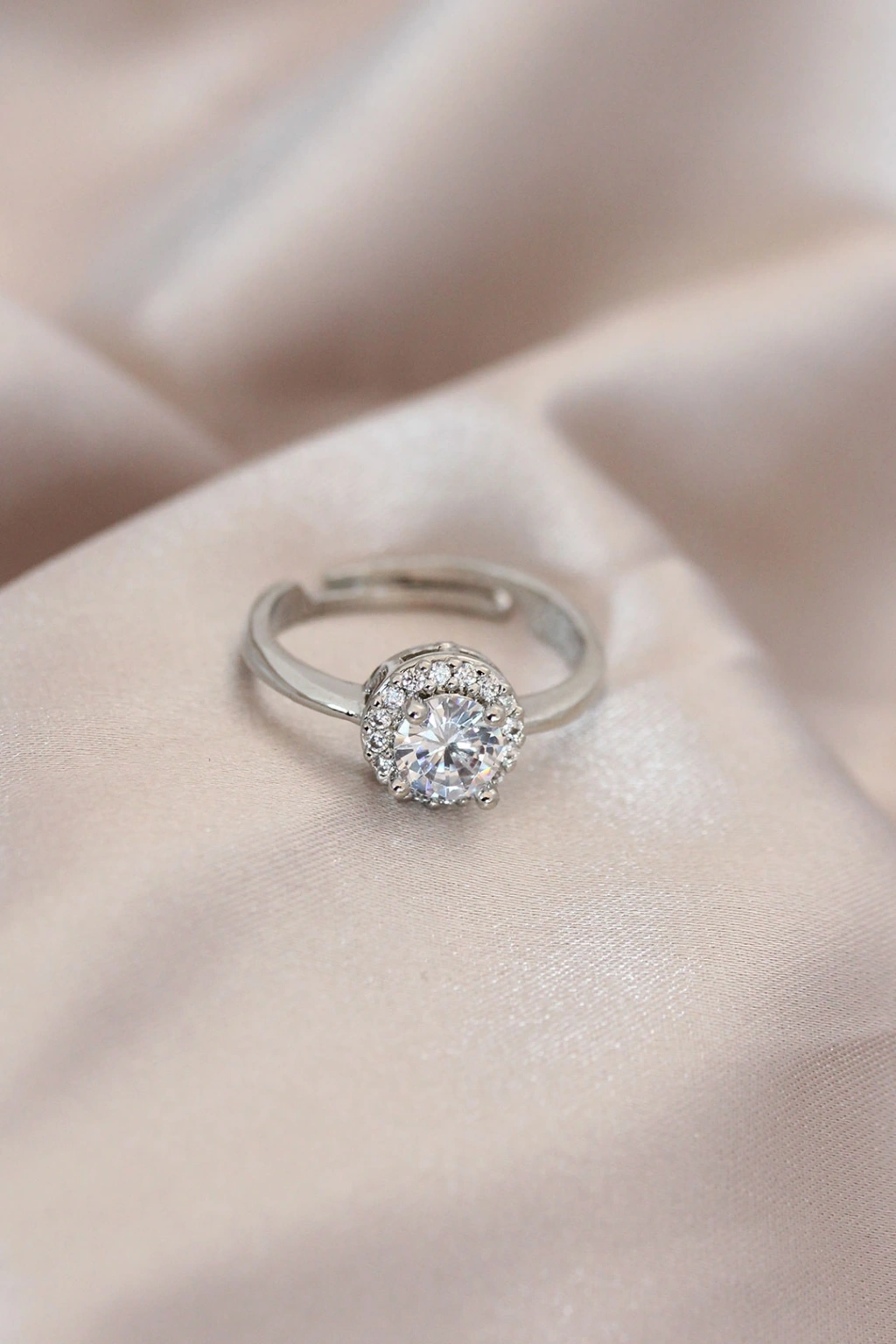 Ayarlamalı Gümüş Renk Metal Zirkon ve Kristal Taşlı Oval Model Yüzük - TJ-BYK2073