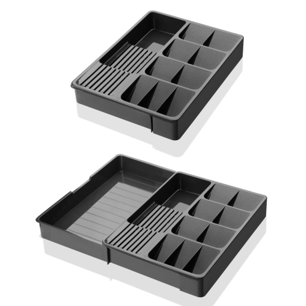 AYARLANABİLİR KAŞIKLIKÜrün ÖzellikleriAyarlanabilir Kaşıklık, mutfak çekmecelerinizi çok daha verimli ve düzenli kullanmanız için geliştirilmiş fonksiyonel bir çözümdür. Ürünün en büyük avantajı olan genişleyebilir sürgülü yapısı, farklı çekmece ölçülerine tam uyum sağlayarak boş alan kalmasını engeller. Şık siyah mat yüzeyi ve modern tasarımıyla mutfak dekorasyonunuza estetik bir dokunuş katar. 30x40x6,3 cm boyutlarındaki baz formu, yanlara doğru açıldığında servis gereçleri, bıçaklar ve büyük mutfak aletleri için ekstra bölmeler oluşturur. Toplamda çok bölmeli organizatör yapısı sayesinde çatal, kaşık, bıçak ve küçük mutfak aksesuarlarınızı kategorize ederek aradığınız her şeye anında ulaşmanızı sağlar. Dayanıklı ve sağlığa uygun plastik materyalden üretilen bu çekmece içi düzenleyici, darbelere karşı dirençli yapısıyla uzun ömürlü kullanım sunar. Kolayca yıkanabilir ve temizlenebilir özelliğiyle hijyenik bir mutfak düzeni sağlayan bu ayarlanabilir kaşıklık, mutfaktaki karmaşayı sonlandırarak zaman kazanmanıza yardımcı olur.Ürün Teknik ÖzellikleriÖzellikAçıklamaÜrün AdıAyarlanabilir KaşıklıkBoyutlar30 x 40 x 6,3 cm (Kapalı Halde)RenkSiyahTasarımGenişleyebilir Sürgülü Sistem - Çok BölmeliMalzemeYüksek Kaliteli PlastikKullanım AlanıMutfak Çekmecesi, Kaşık ve Gereç DüzenlemeÖzellikKolay Temizlenebilir, Ayarlanabilir GenişlikPaket İçeriği1 Adet Ayarlanabilir Kaşıklık