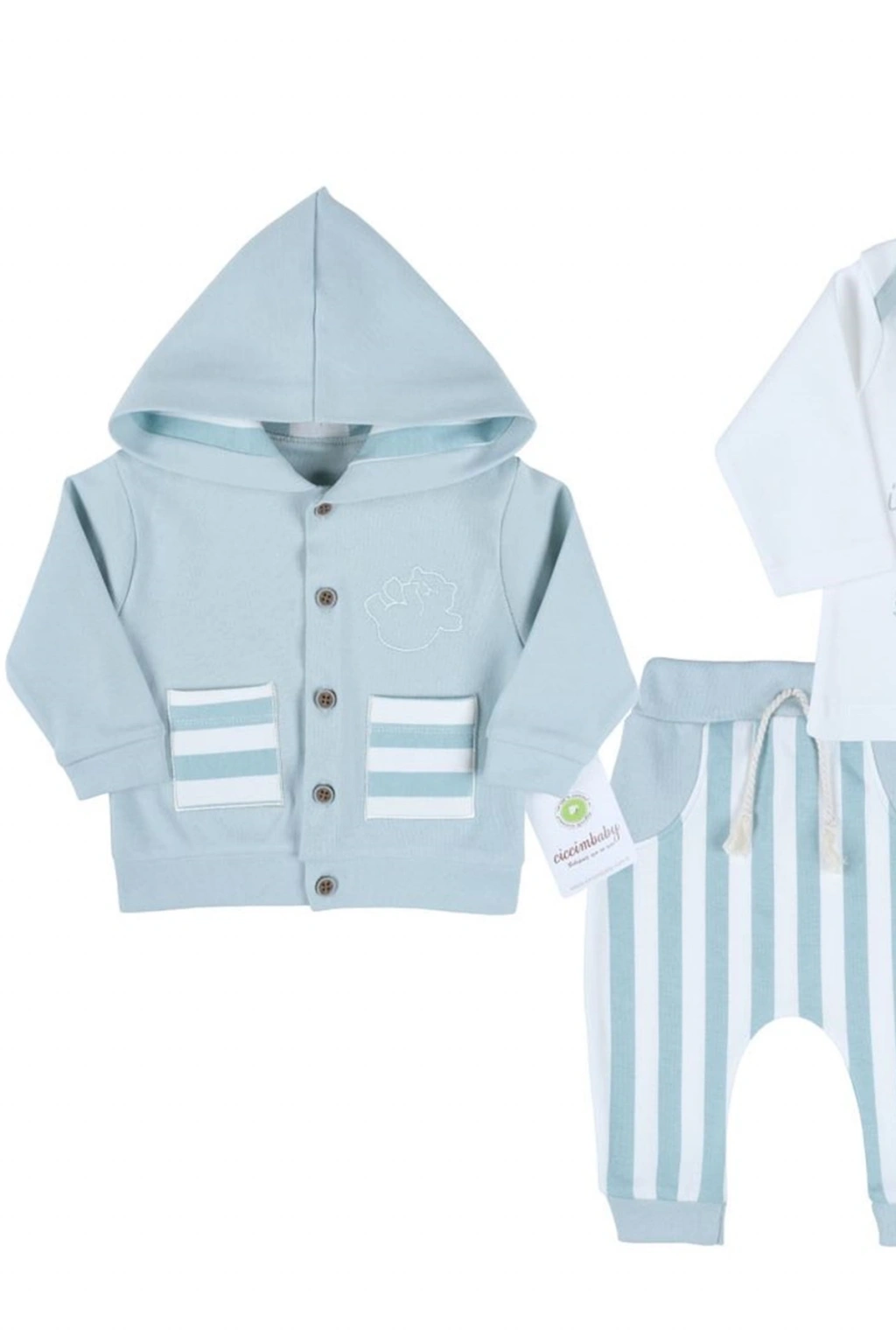 Ayıcık Nakışlı Hırkalı % 100 Pamuk Erkek Bebek Takım