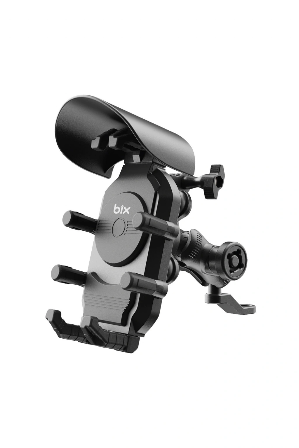 Ayna Bağlantılı Güneş ve Yağmur Korumalı 360° Derece Ayarlanabilir Motosiklet Telefon Tutucu