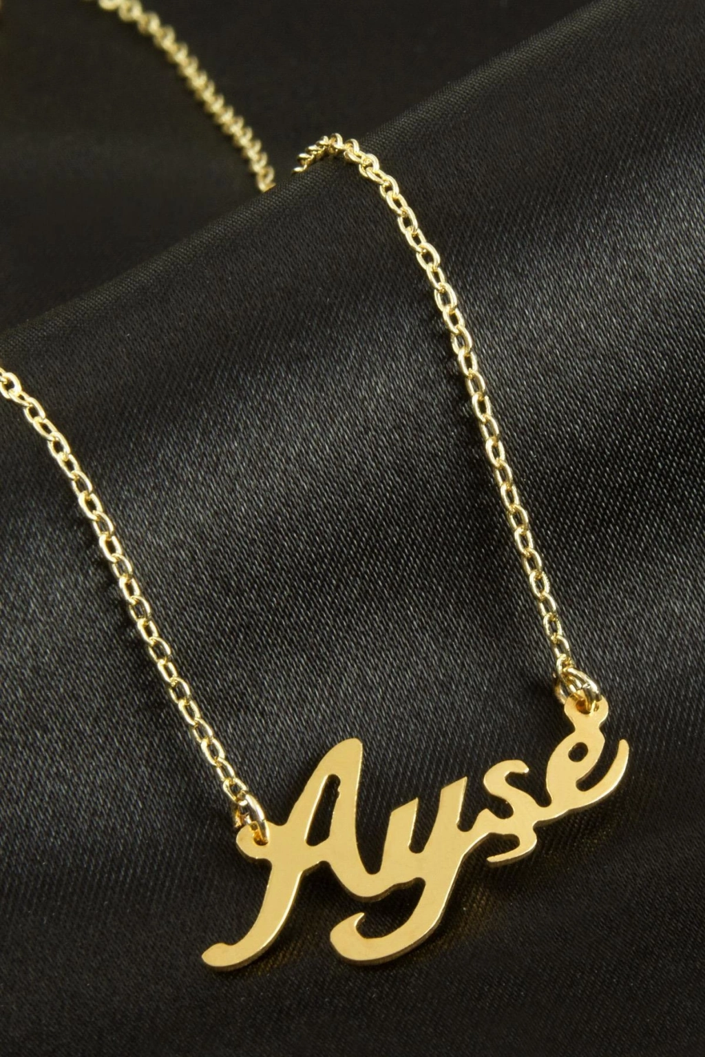 Ayşe isimli kolye. İsimli kolye pirinç madeninden ve altın kaplamalıdır. Kişiye özel üretilmektedir.Yazdırmak istediğiniz ismi bize mesaj olarak iletmeniz gerekmektedir. Kullanıma bağlı olarak uzun süre kullanıma uygundur. Ürün malzemesi 1.sınıf kalitededir. Ürün ve zinciri sarı renktedir. Ürün zincir boyu 45 cm ve ürün üzerindeki isimler yaklaşık 3 cmdir. İsim boyları ürün ismine göre degişiklik göstermektedir.