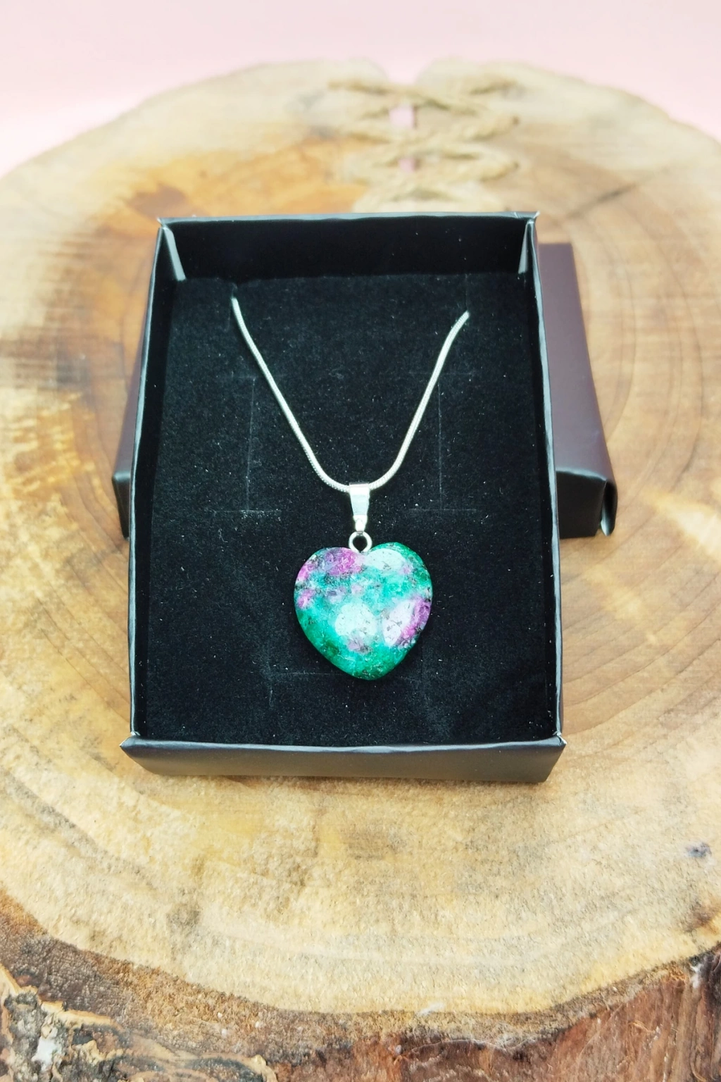 Yakut Doğal Taşı Zincirli El Yapımı Tasarımlı Kolye Uç: 3,5 cm Zincir: 20 cm Kutulu