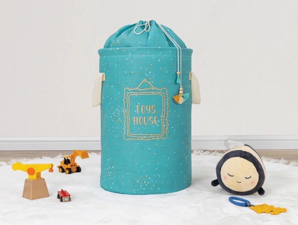 Baby Kullanımı Kolay Desenli Taşınabilir Torbalı Yuvarlak Sepet(Yeşil)