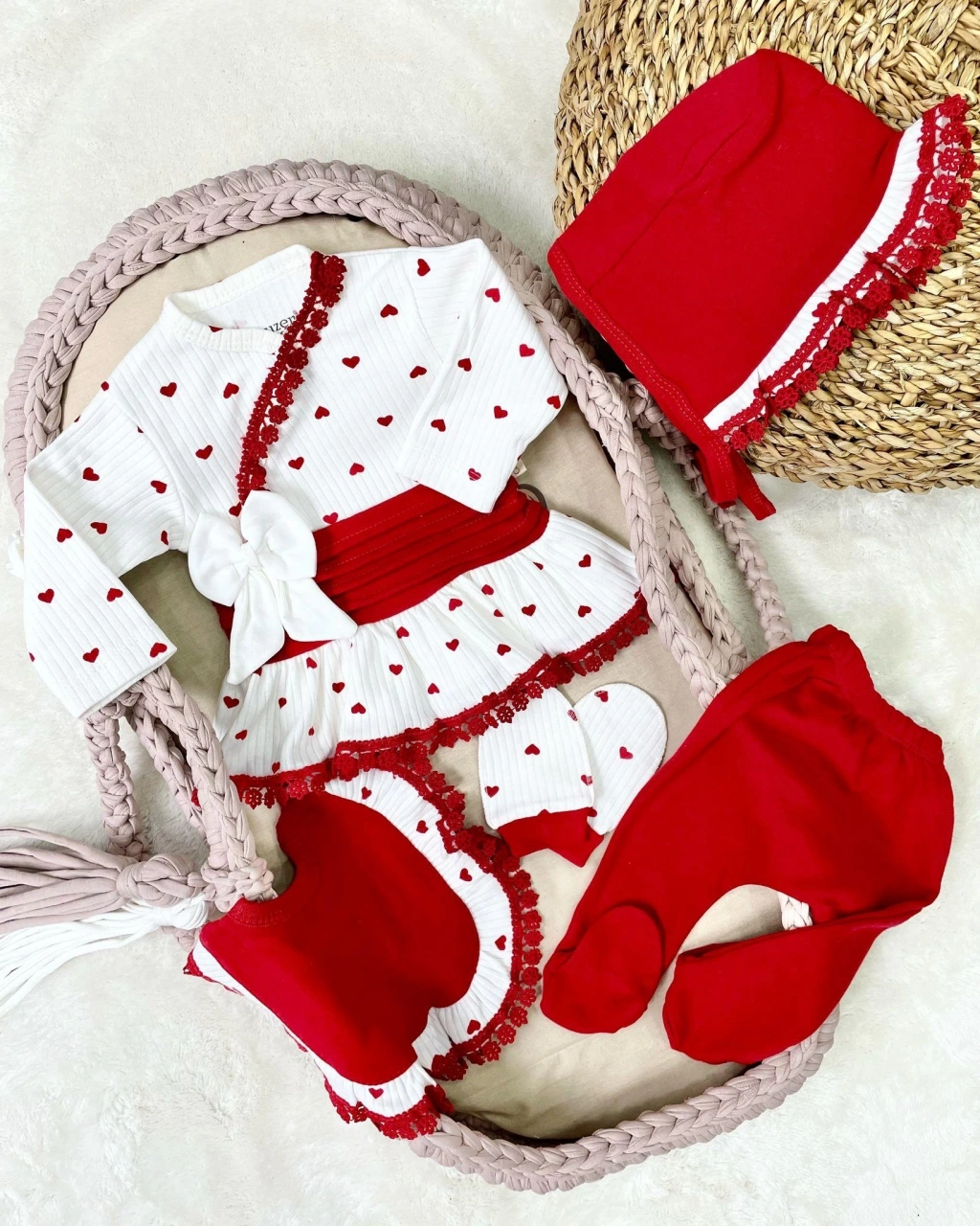 Kalp Baskılı Kutulu 5 Parça Hastane Çıkışı Seti %100 Pamuk