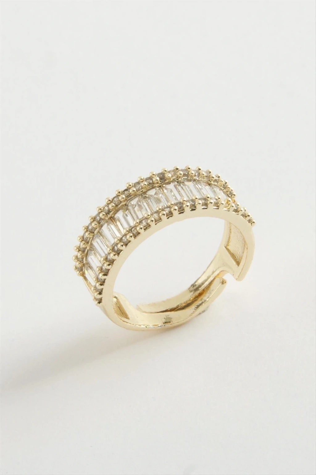 Yüzük; Ürün malzemesi baget taş ve metaldir. 1 sınıf kaliteli malzeme kullanılmıştır. Yüzük parmağa göre ayarlanabilir.