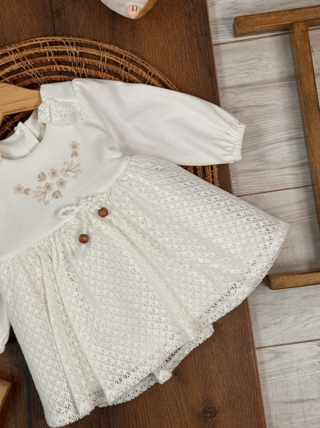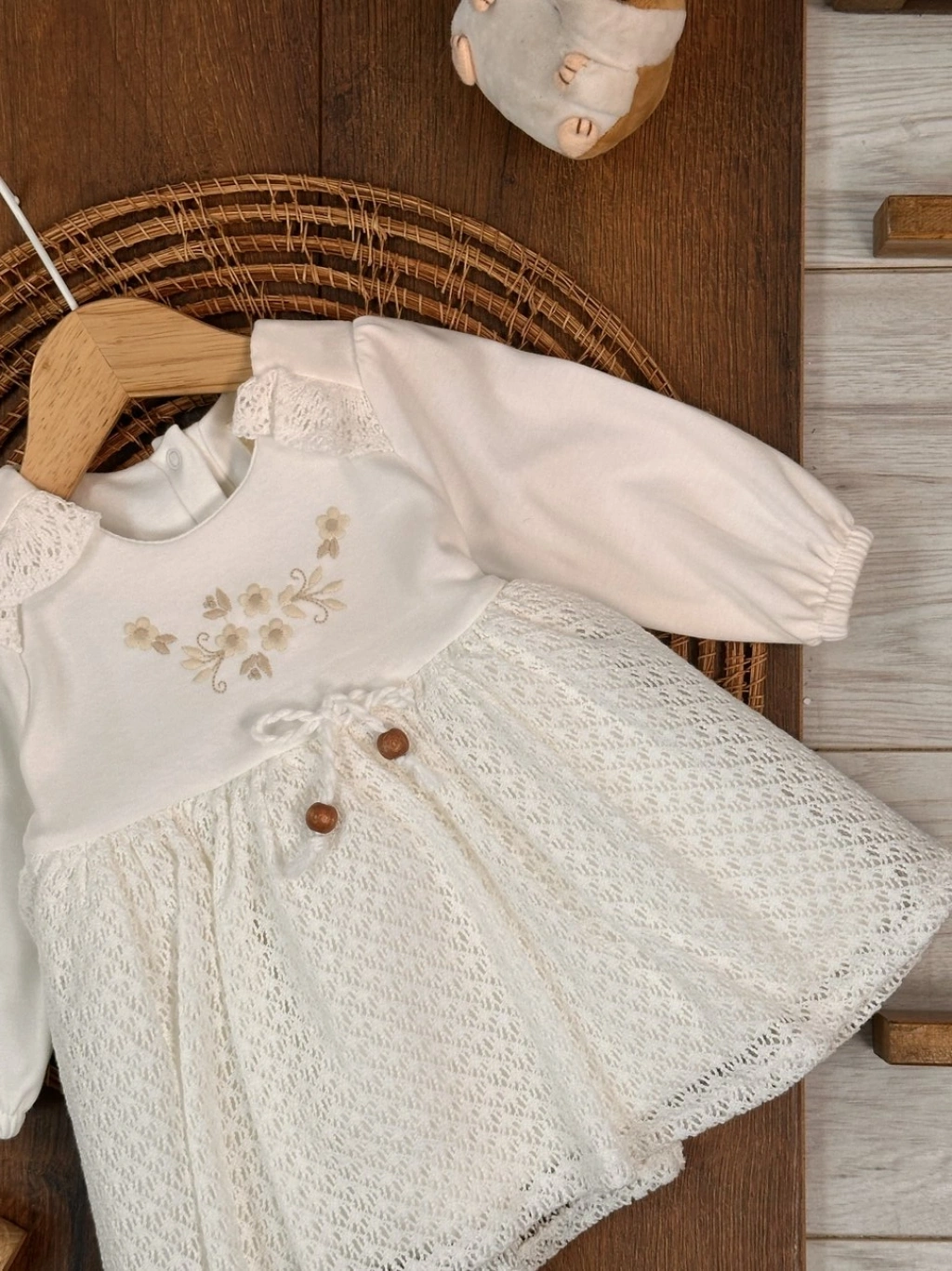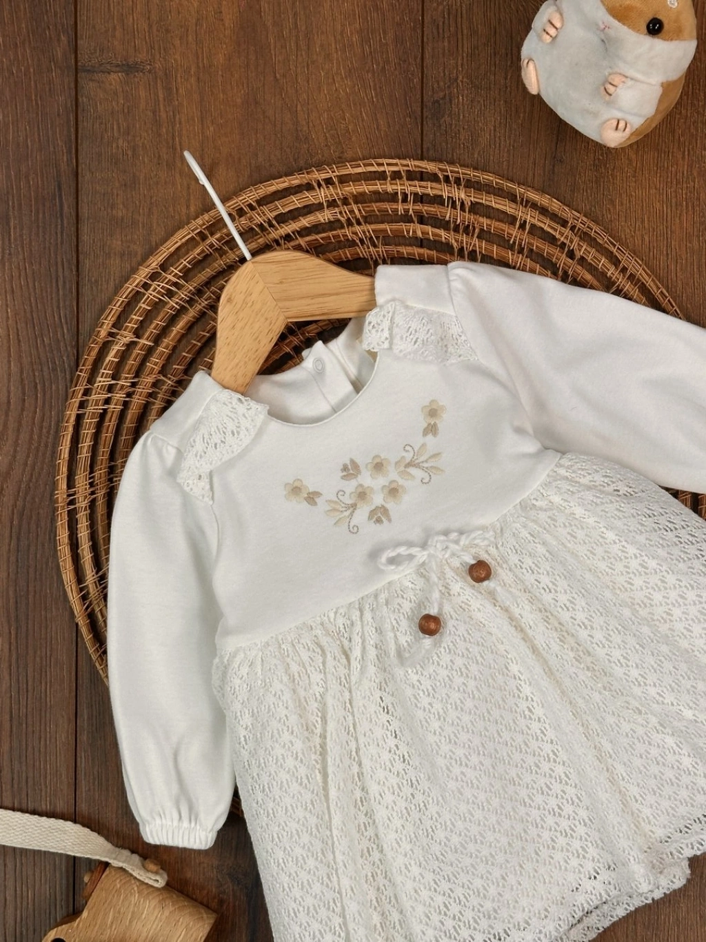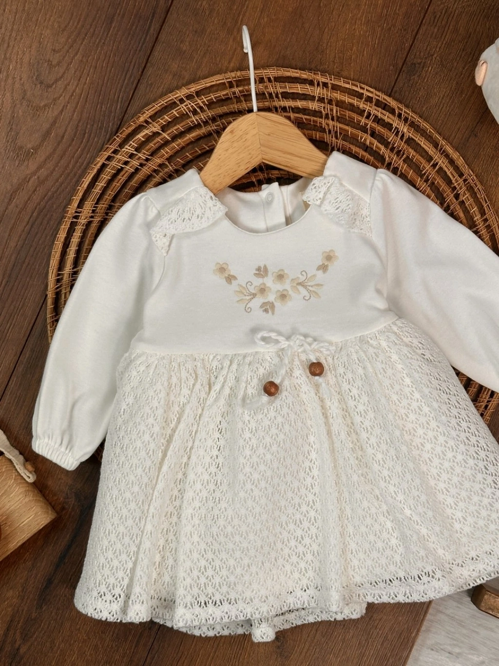 Bahar Pamuklu Çiçek Nakışlı Kız Bebek Elbise