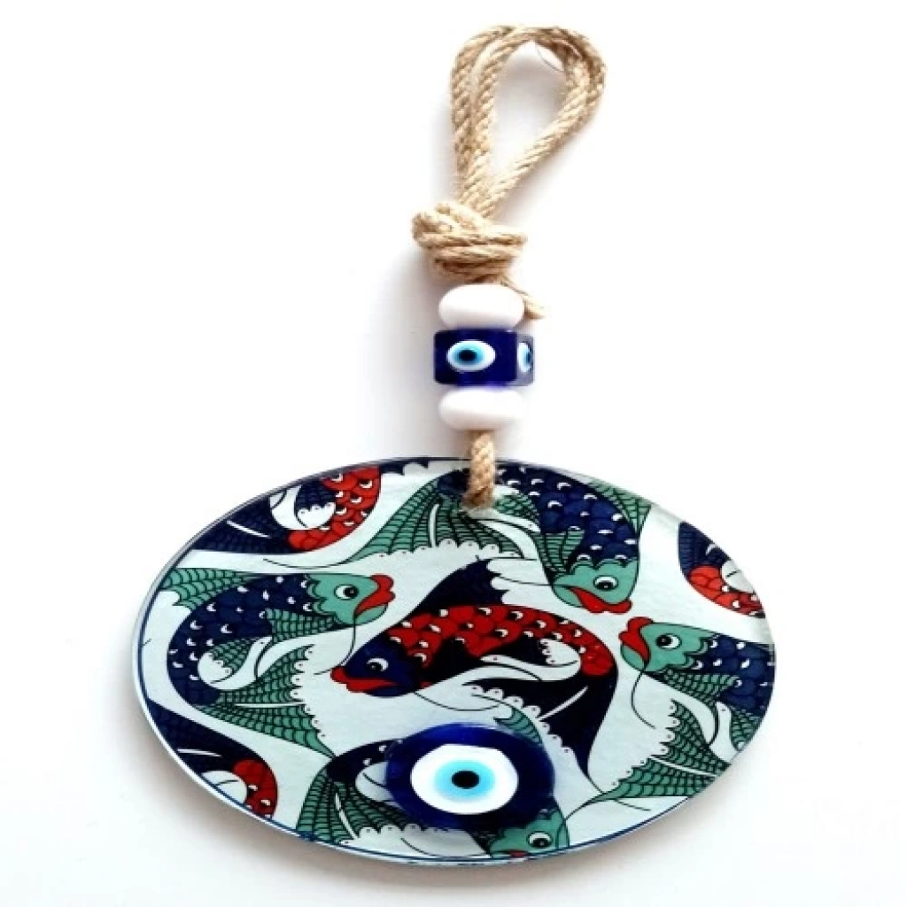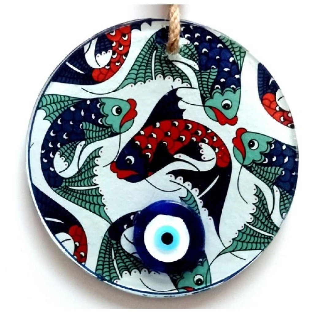 Balık Desenli Nazar Boncuklu Füzyon Cam Duvar Dekoru