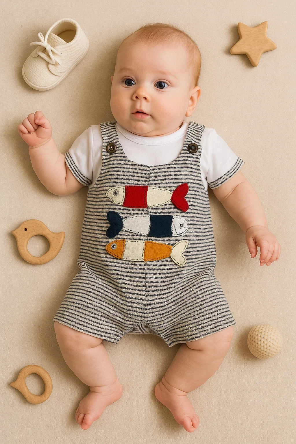 Balık Nakışlı Kısa Kollu Erkek Bebek Tulumu