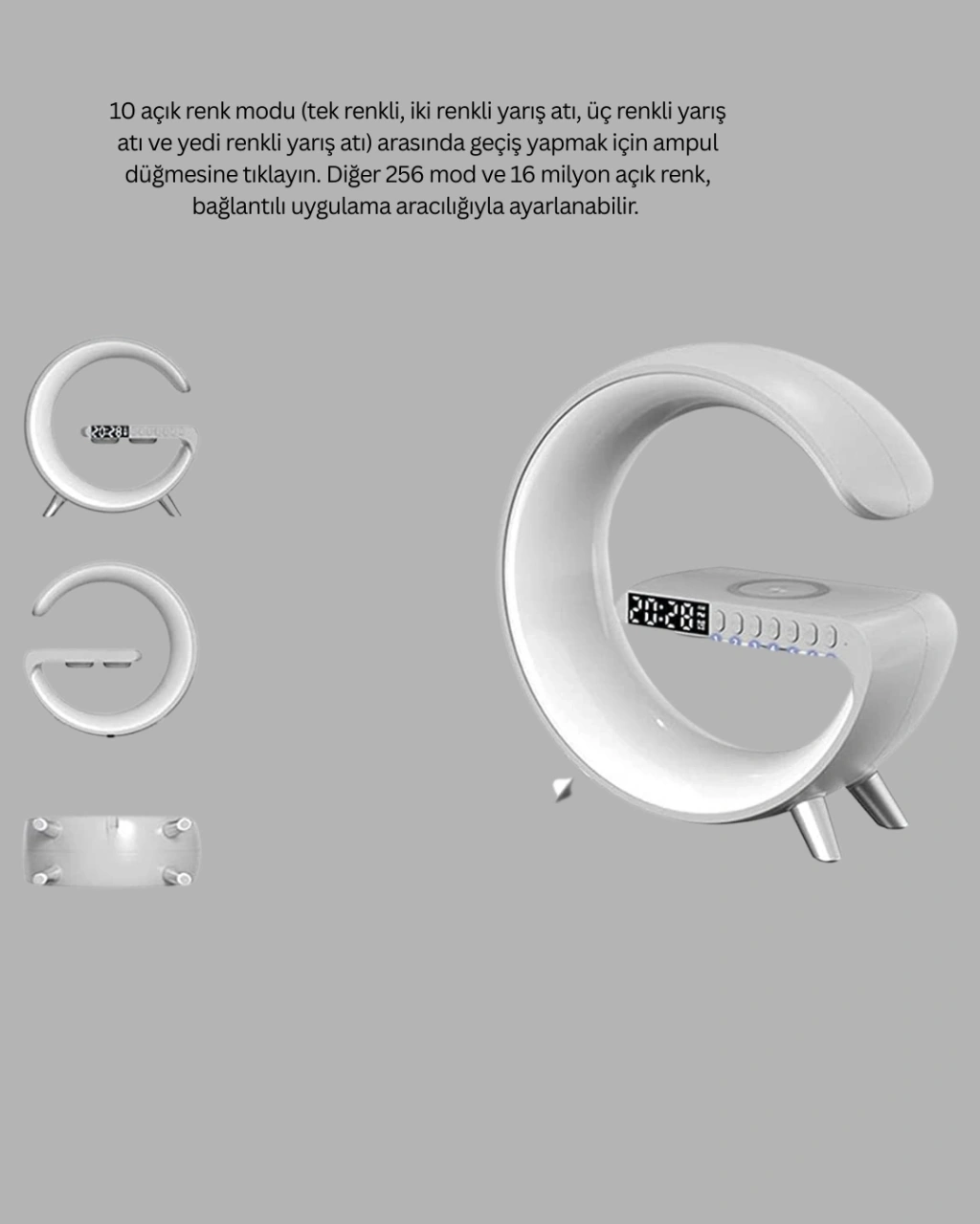 Dekoratif tasarımıyla dikkat çeken bu kablosuz şarjlı masa lambası, yalnızca teknik bir ürün değil aynı zamanda şık bir oda aksesuarıdır. ABS malzemeden üretilmiş sağlam tabanı, uzun ömürlü kullanım sunar. Minimal ve modern görünümü sayesinde her dekorasyon tarzına uyum sağlar.Başucu lambası, çalışma lambası veya gece lambası olarak rahatlıkla kullanılabilir. Bluetooth hoparlör özelliği ile ortamınıza müzik ekleyebilir, kablosuz şarj desteğiyle masa üzerindeki kablo kalabalığını ortadan kaldırabilirsiniz.