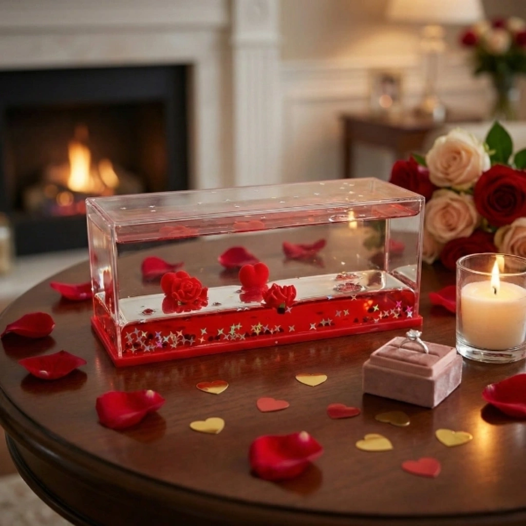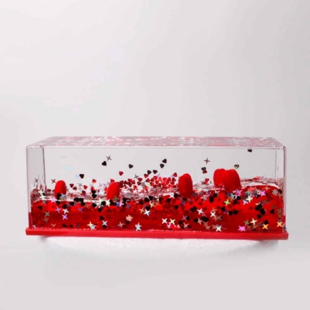 BATMAYAN KALPLİ GÜLLÜ AKVARYUM HEDİYELİKÜrün ÖzellikleriBatmayan kalpli güllü akvaryum hediyelik, romantik ve anlamlı tasarımıyla özel günlerde sevdiklerinize unutulmaz bir hediye alternatifi sunar. Şeffaf akvaryum görünümüne sahip bu dekoratif ürün, su içerisinde batmadan duran kırmızı kalpler ve güller sayesinde göz alıcı bir görsellik oluşturur. İç mekân dekorasyonunda sehpa, masa, vitrin veya raf üzerinde rahatlıkla kullanılabilir ve bulunduğu ortama sıcak, romantik bir hava katar. Estetik detayları sayesinde Sevgililer Günü, evlilik teklifi, yıl dönümü, doğum günü ve özel sürprizler için ideal bir seçimdir. Dayanıklı yapısı uzun süreli kullanım imkânı sunarken, bakım gerektirmeyen dekoratif formu ile zahmetsiz bir şekilde sergilenebilir. Hediyelik olarak tercih edildiğinde duygusal değeri yüksek, şık ve dikkat çekici bir ürün olarak öne çıkar.Paket İçeriği1 adet Batmayan Kalpli Güllü Akvaryum Hediyelik