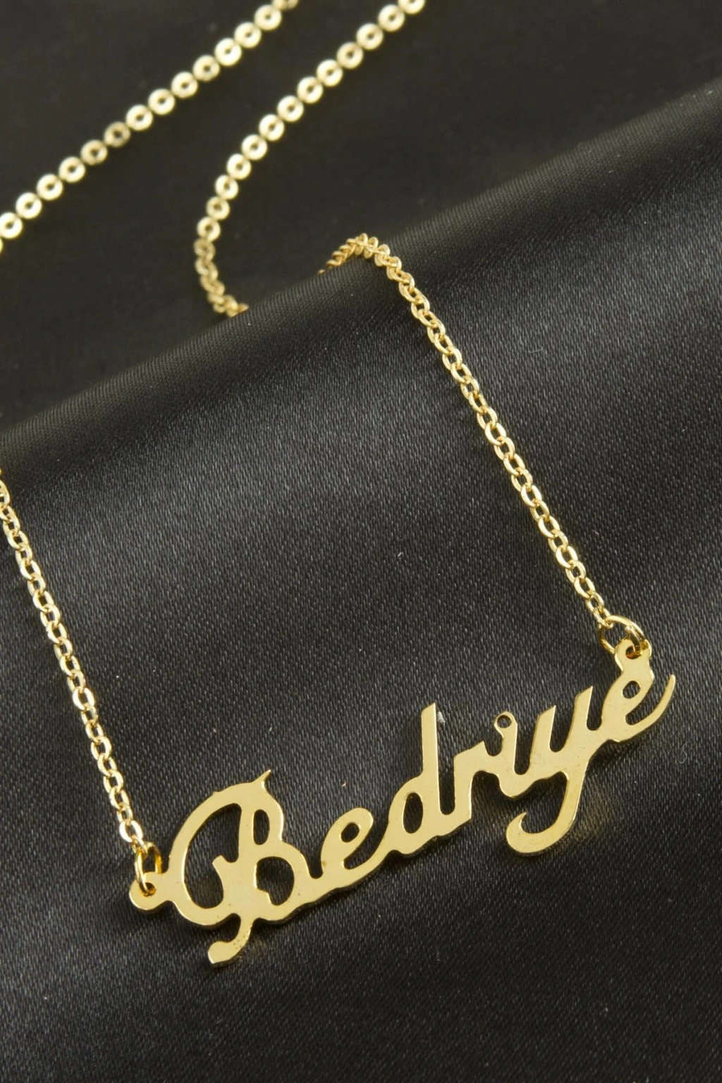Bedriye isimli kolye. İsimli kolye pirinç madeninden ve altın kaplamalıdır. Kişiye özel üretilmektedir.Yazdırmak istediğiniz ismi bize mesaj olarak iletmeniz gerekmektedir. Kullanıma bağlı olarak uzun süre kullanıma uygundur. Ürün malzemesi 1.sınıf kalitededir. Ürün ve zinciri sarı renktedir. Ürün zincir boyu 45 cm ve ürün üzerindeki isimler yaklaşık 3 cmdir. İsim boyları ürün ismine göre degişiklik göstermektedir.