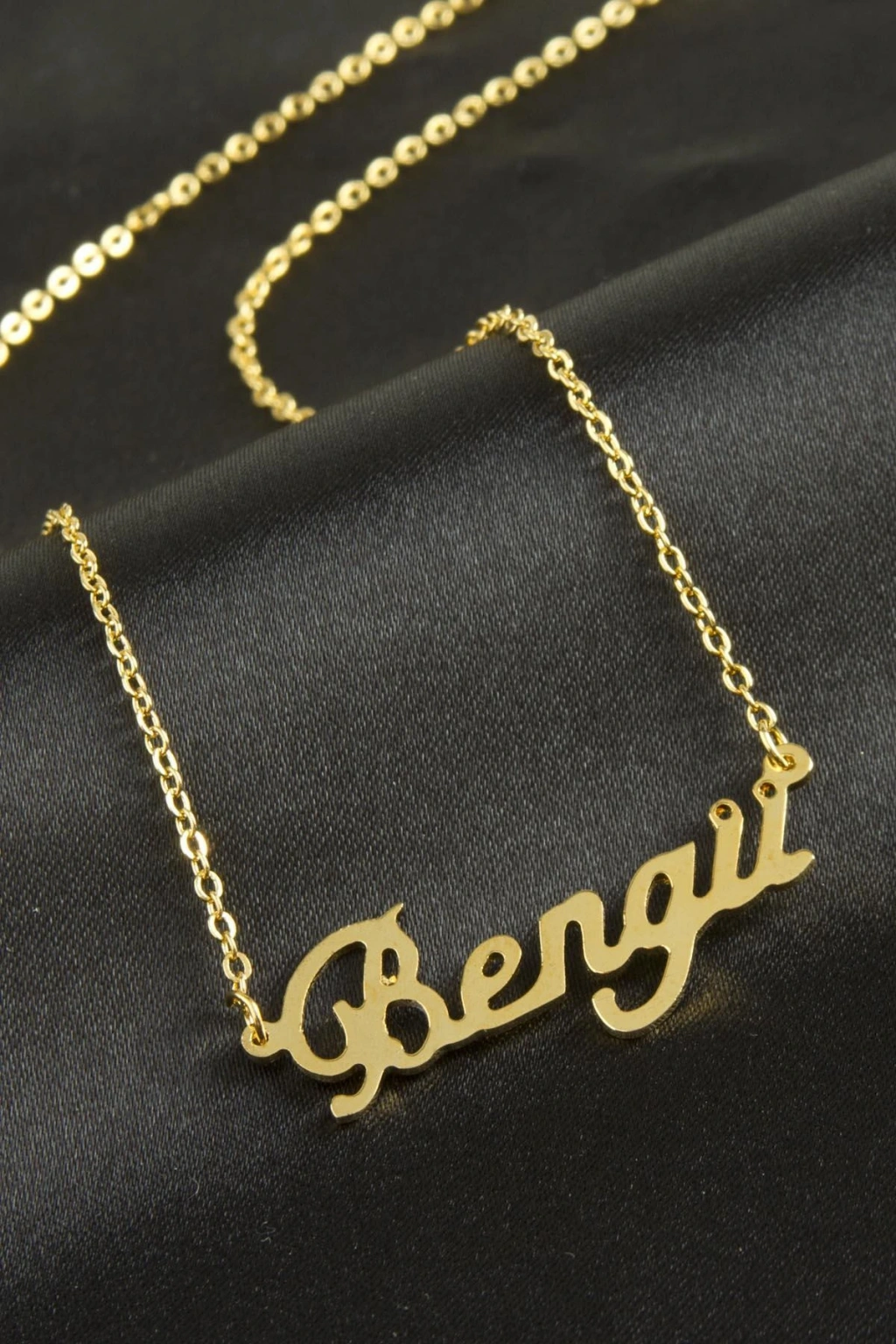 Bengü isimli kolye. İsimli kolye pirinç madeninden ve altın kaplamalıdır. Kişiye özel üretilmektedir.Yazdırmak istediğiniz ismi bize mesaj olarak iletmeniz gerekmektedir. Kullanıma bağlı olarak uzun süre kullanıma uygundur. Ürün malzemesi 1.sınıf kalitededir. Ürün ve zinciri sarı renktedir. Ürün zincir boyu 45 cm ve ürün üzerindeki isimler yaklaşık 3 cmdir. İsim boyları ürün ismine göre degişiklik göstermektedir.