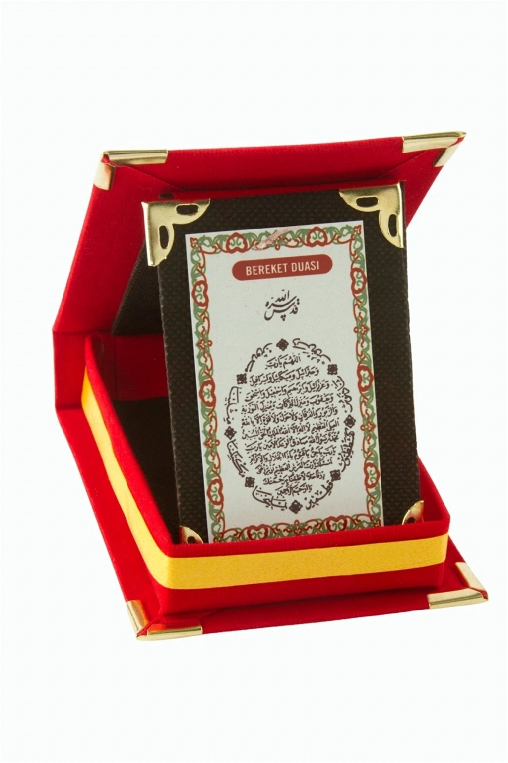 Süet kutulu plaket, metal üzerine yazı yazılarak üretilmiştir, ölçüleri kurulu vaziyette; yükseklik: 11cm, genişlik: 8 cm'dir.