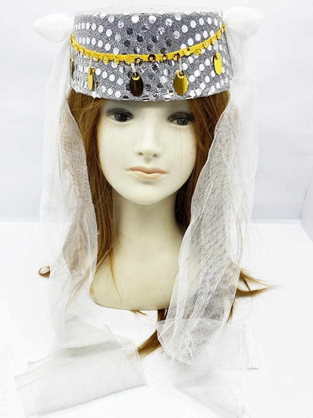 BEYAZ DUVAKLI ALTIN PUL İŞLEMELİ KINA FESİÜrün ÖzellikleriBeyaz duvaklı altın pul işlemeli kına fesi, geleneksel tasarımı ve şık detaylarıyla kına gecelerinin vazgeçilmez aksesuarlarından biridir. Altın renkli pul işlemeleri, fesin zarif ve göz alıcı bir görünüm kazanmasını sağlar. Beyaz duvak detayı, aksesuarın hem estetik hem de işlevsel bir dokunuş kazanmasına olanak tanır.Kaliteli malzemeden üretilen bu kına fesi, uzun süreli kullanım için dayanıklıdır. Hafif yapısıyla rahat bir kullanım sunar ve kına gecelerinde gelin ve misafirler için unutulmaz bir aksesuar haline gelir.Paket İçeriği1 adet Beyaz Duvaklı Altın Pul İşlemeli Kına Fesi