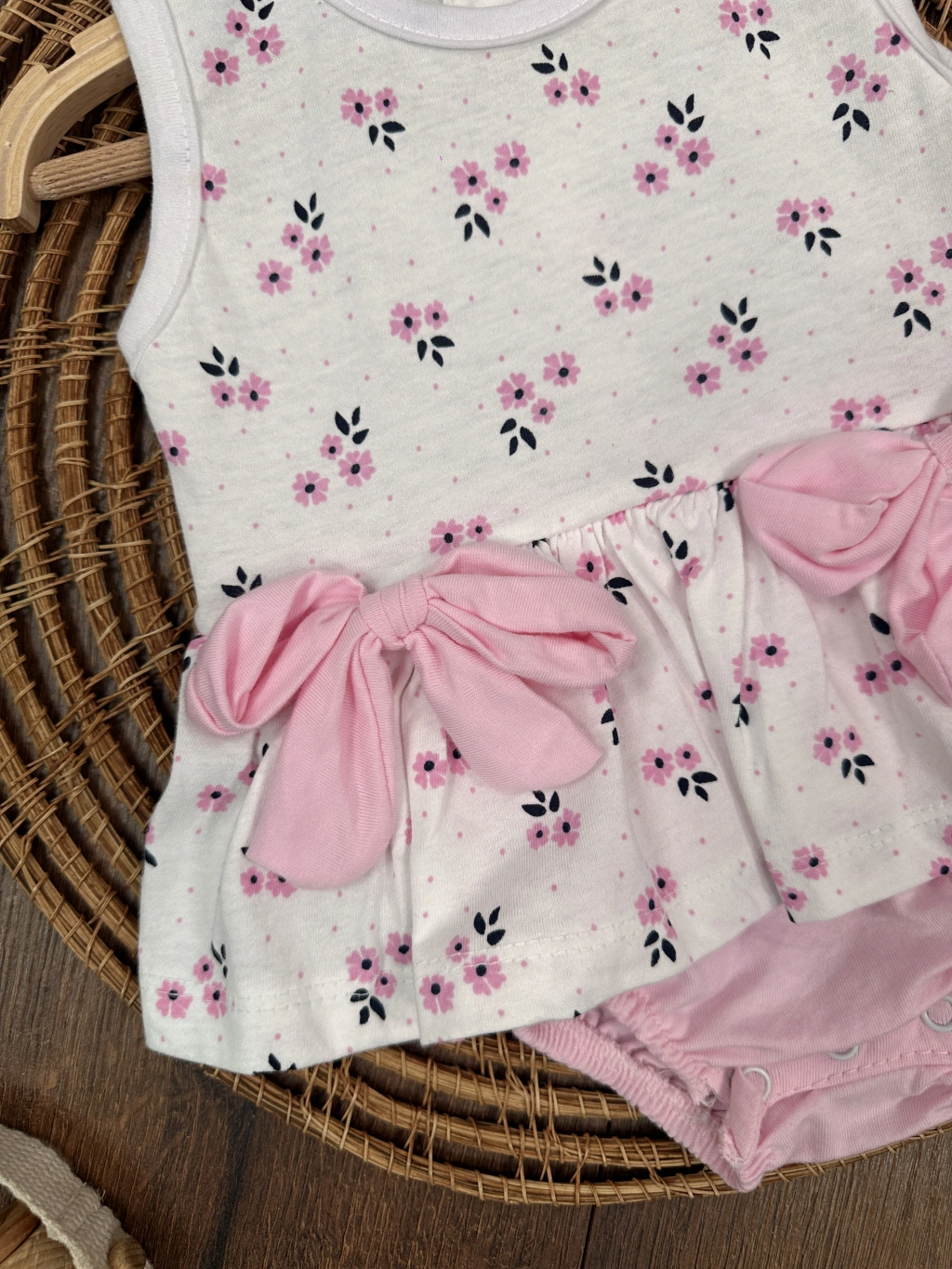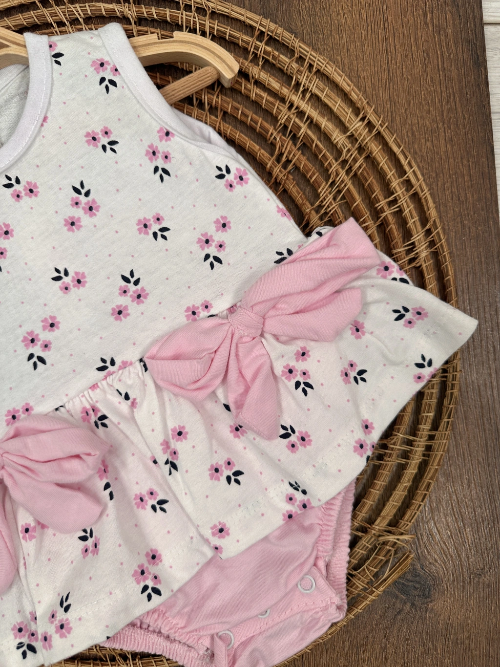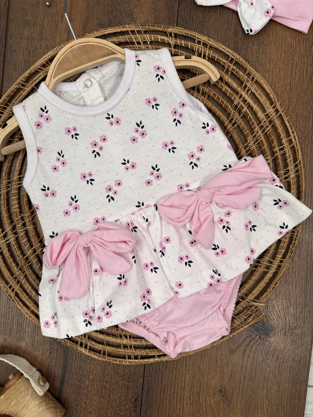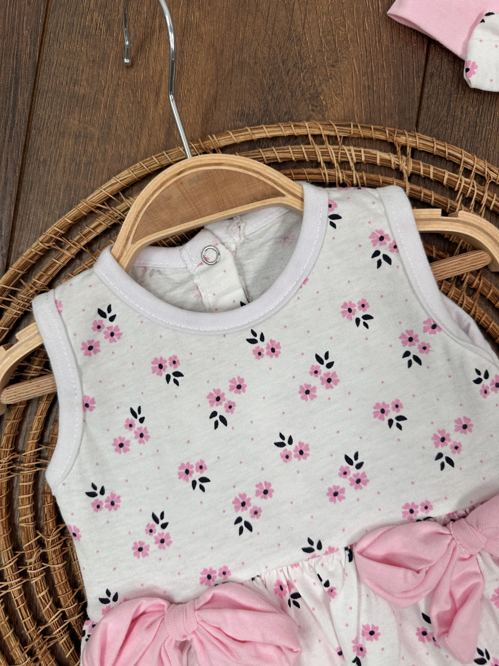 Çiçek Askılı Külotlu 2li Kız Bebek Elbise