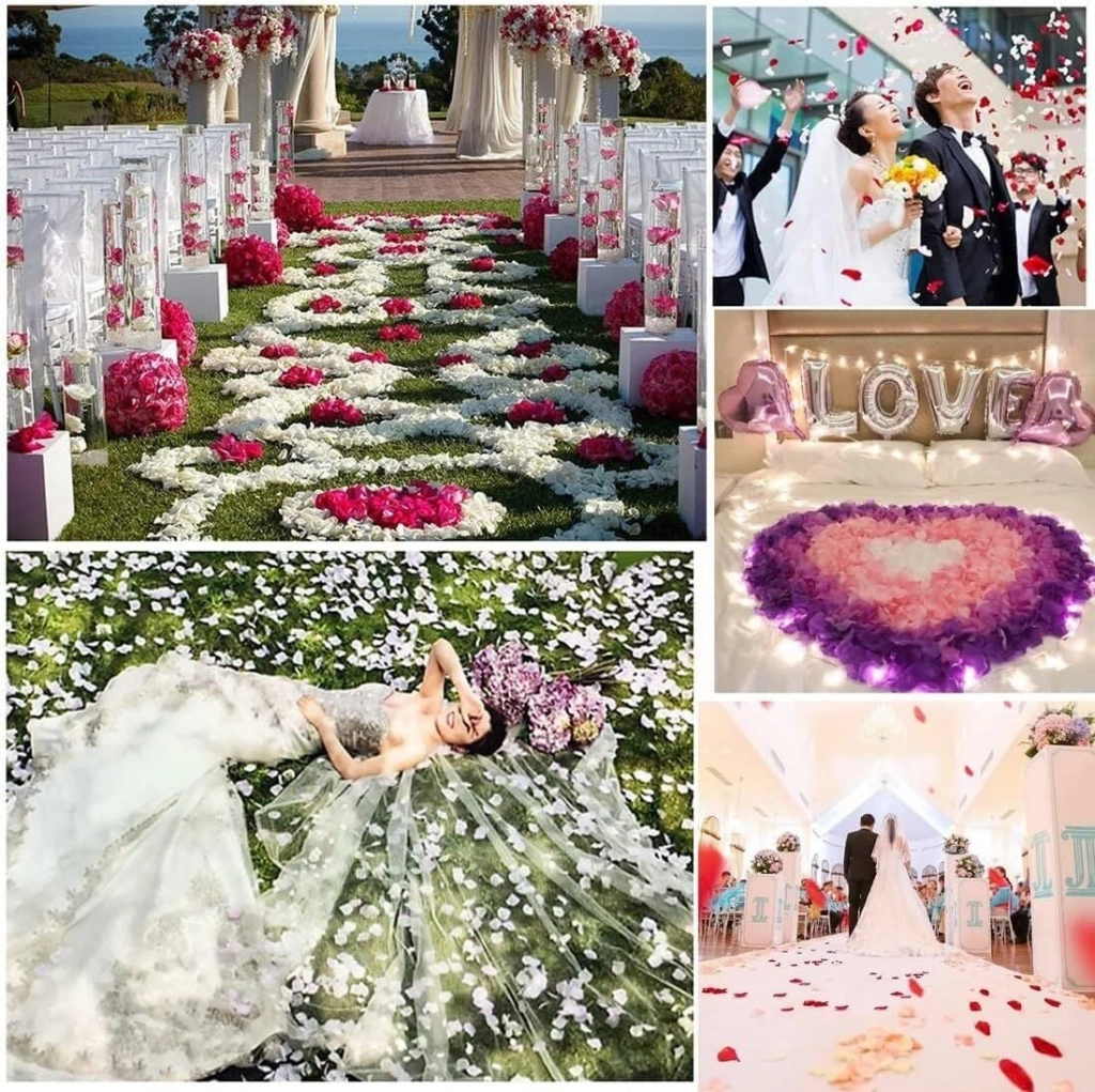 Gerçek gül yaprağı görünümüne sahip bu konfeti, masa süslemelerinden gelin yoluna, hediye paketlerinden fotoğraf çekim alanlarına kadar farklı kullanım alanlarında şık bir atmosfer oluşturur.