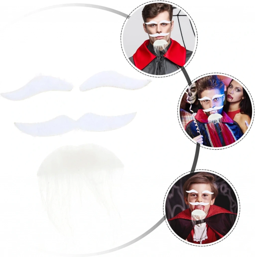 • Beyaz Renk Kendinden Yapışkanlı Takma Sakal Bıyık Ve Kaş Seti