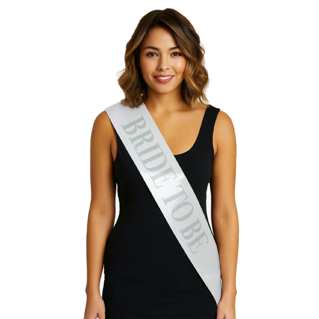Bekarlığa veda partilerinin vazgeçilmezi olan bu şık kuşak, gelin adaylarına özel olarak tasarlandı! Parlak gümüş renkli "Bride To Be" yazısı ile dikkat çeken bu zarif kuşak, kaliteli beyaz saten kumaştan üretilmiştir. Işıltılı yazısı sayesinde hem gündüz hem de gece yapılan kutlamalarda harika bir görünüm sunar.