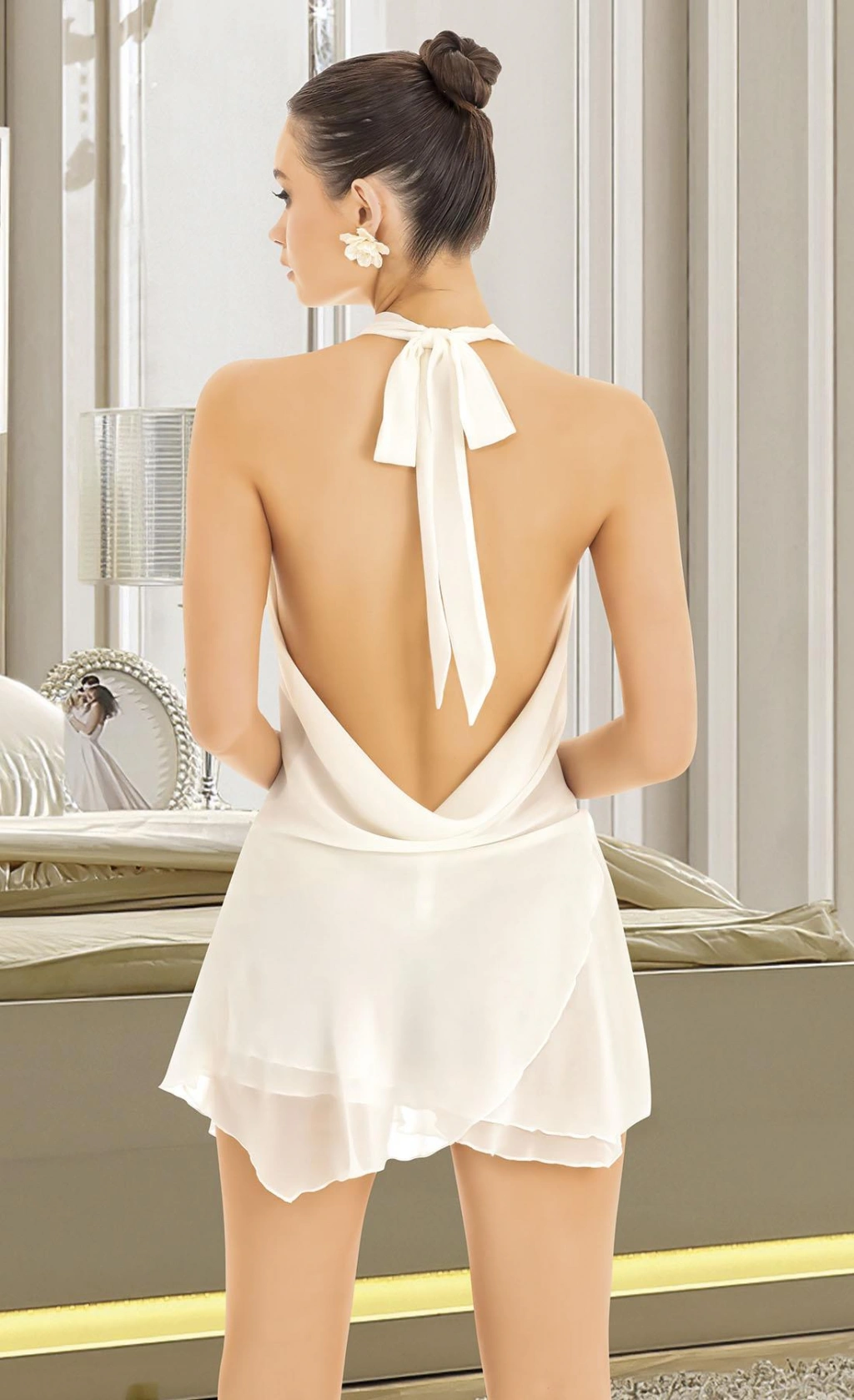 Beyaz Sırt Ve Göğüs Dekolteli Fantezi Mini Elbise