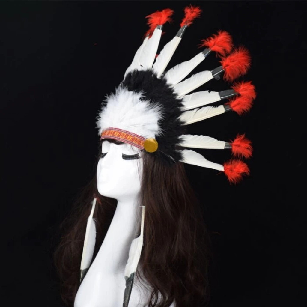 Beyaz Tüylü Siyah Kırmızı Büyük Hintli Kızılderili Başlığı (4887)